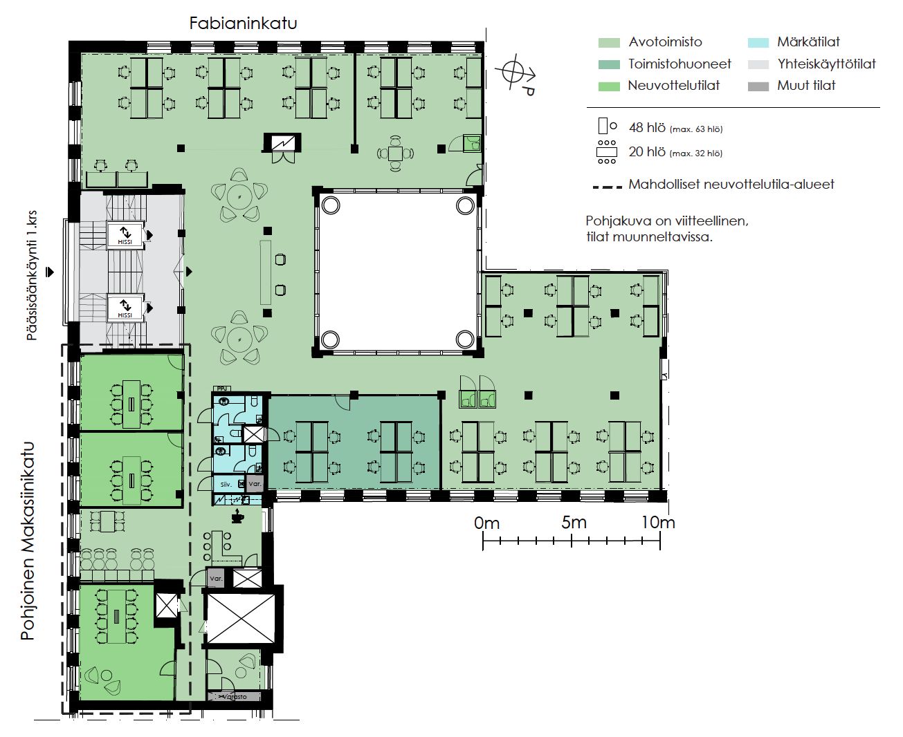 Uudistuneet tilat tarjoavat henkilökunnallenne työhyvinvointia tukevan työympäristön, joka on muokattavissa toiveidenne mukaan noin 200 - 3000 neliön toimistoiksi.