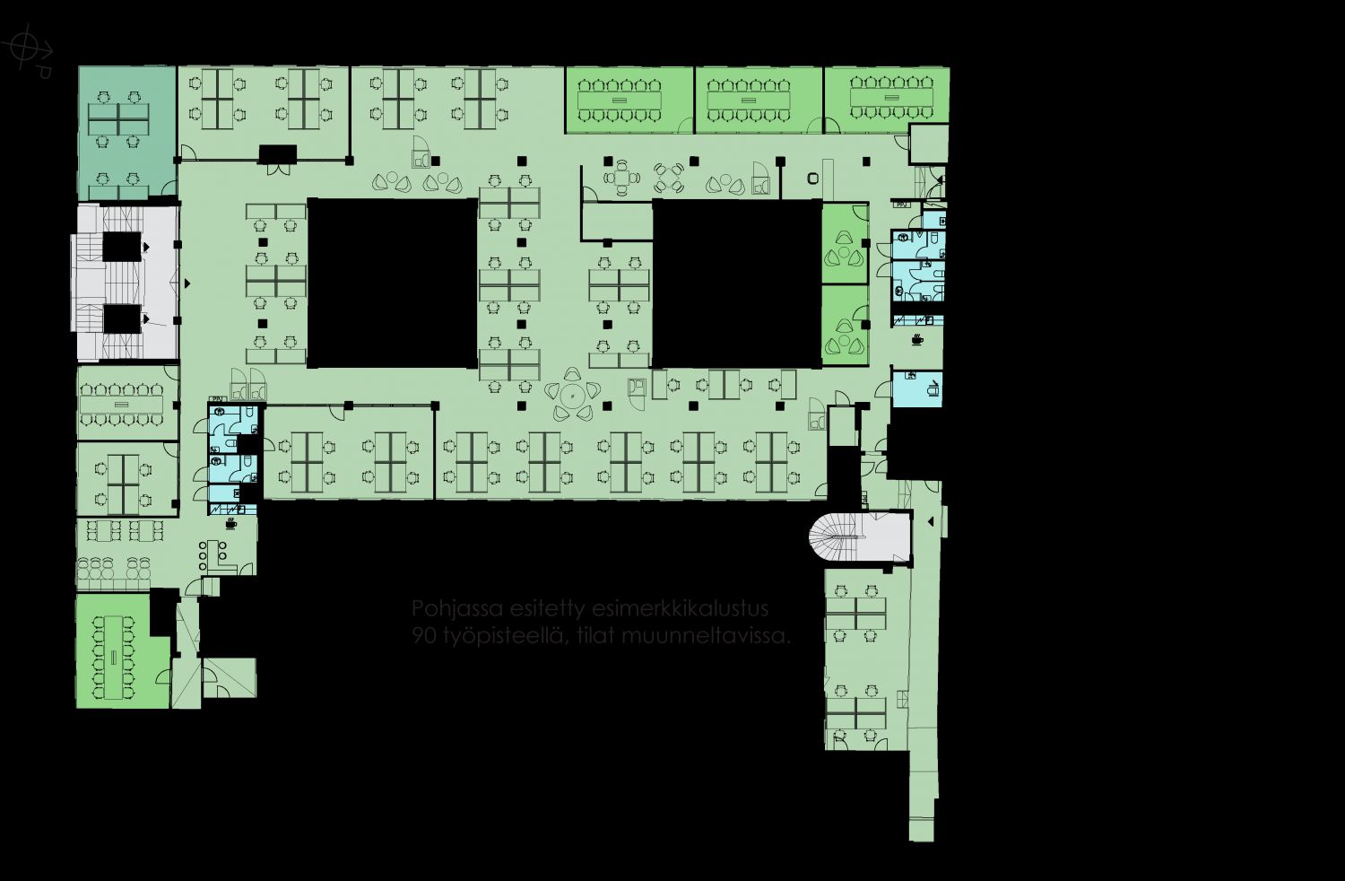 Uudistuneet tilat tarjoavat henkilökunnallenne työhyvinvointia tukevan työympäristön, joka on muokattavissa toiveidenne mukaan noin 200 - 3000 neliön toimistoiksi.