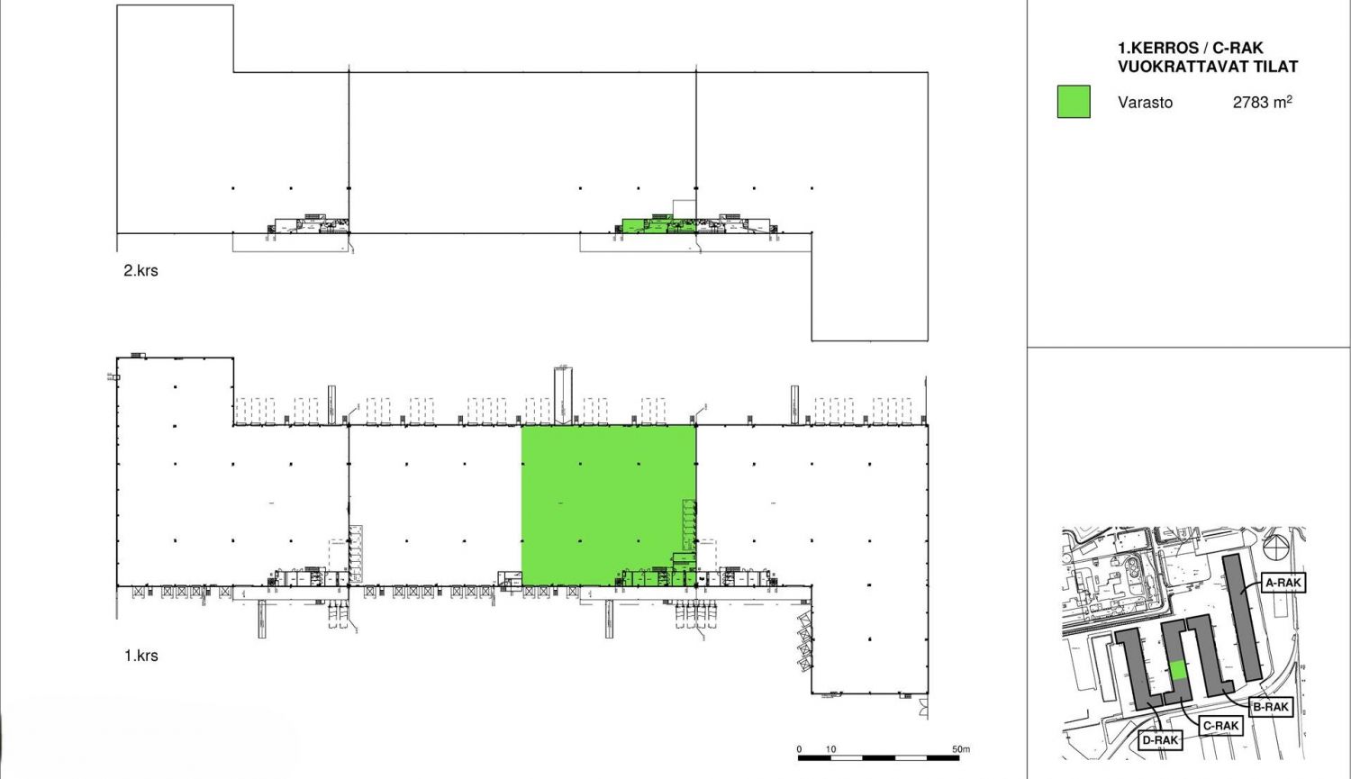 Vapaana moderni varastotila jossa on 9 lastaustaskua, lastauslaituri ja 2 sisäänajorampia. Varastossa on pieni toimisto, taukotilat ja sosiaalitilat. Varaston vapaa korkeus on 6 m ja lattiakantavuus 4000 kg/m2.