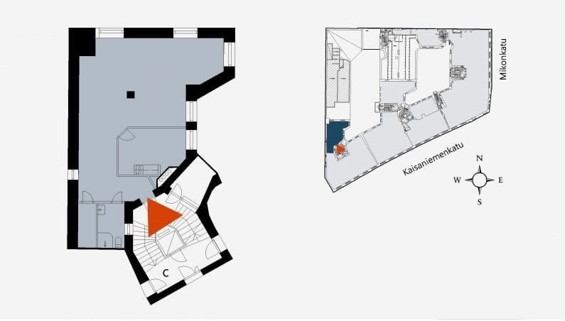 Tämä kiinteistö sijaitsee aivan Helsingin ydinkeskustassa, Mikonkadun ja Kaisaniemenkadun kulmassa. Sijainti vain kivenheiton päässä Rautatieasemasta ja keskustan palveluita on täydellinen jos haet keskeistä sijaintia toiminnallesi. Jäähdytetty ilmanvaihto ja kuituyhteys luovat erinomaiset työskentelyn lähtökohdat.