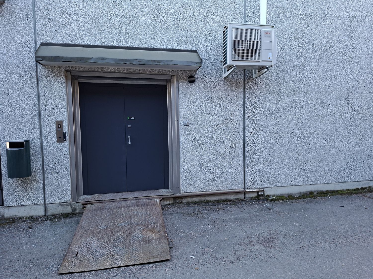 Käynti talon päädystä portaista.