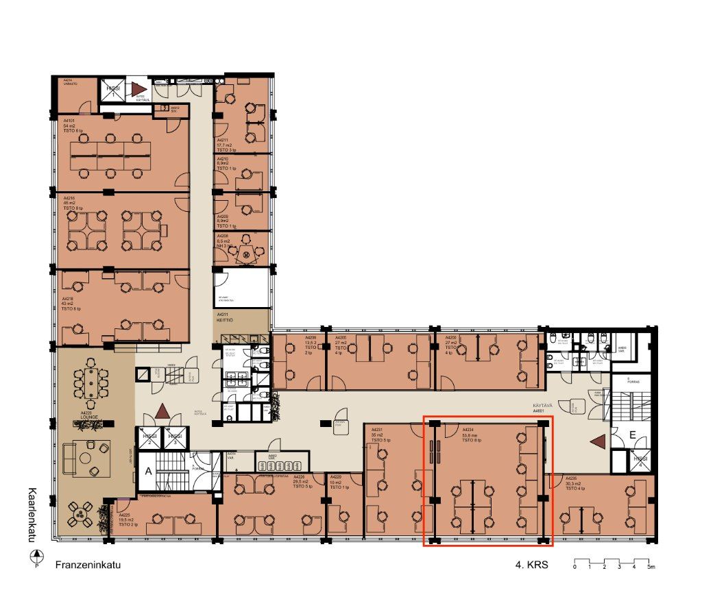 Vuokrattavana laadukas 53,80 m² toimistotila Helsingin Kallion ytimessä, Kaarlenkatu 9-11 (K9) kiinteistössä. Tila sijaitsee kiinteistön 4. kerroksessa, ja sen sijainti on erinomainen hyvien julkisten liikenneyhteyksien varrella. Kaarlenkadun ratikkapysäkki sijaitsee aivan kiinteistön edessä.