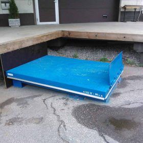 Tavarahuolto katetun lastauslaiturin kautta tavarahissillä.