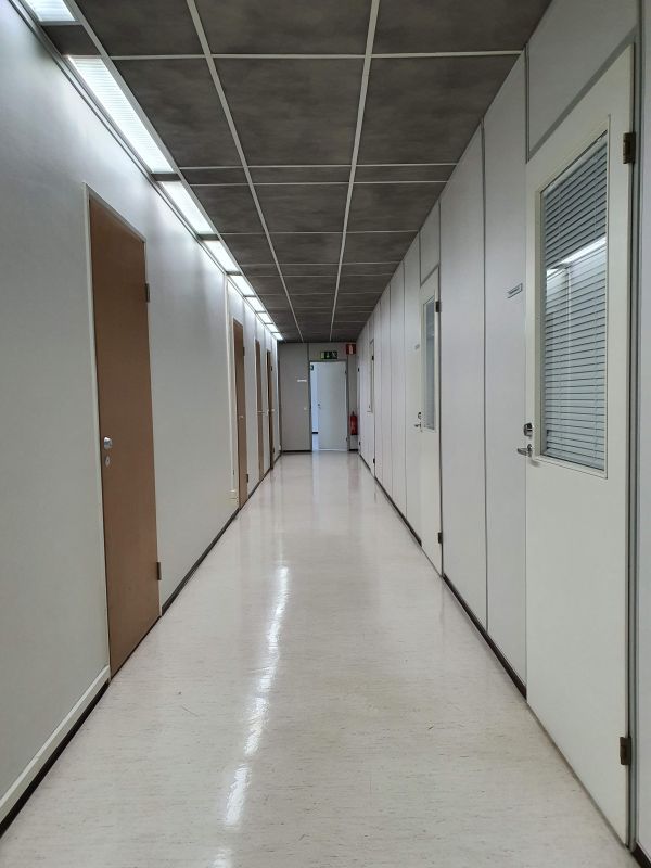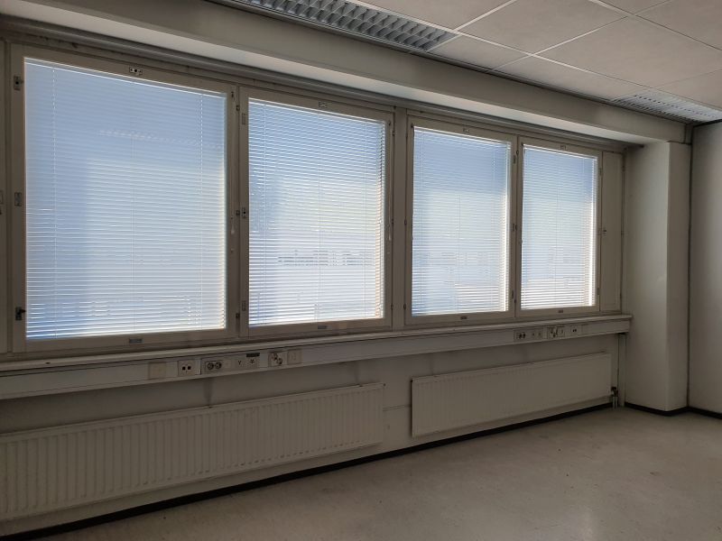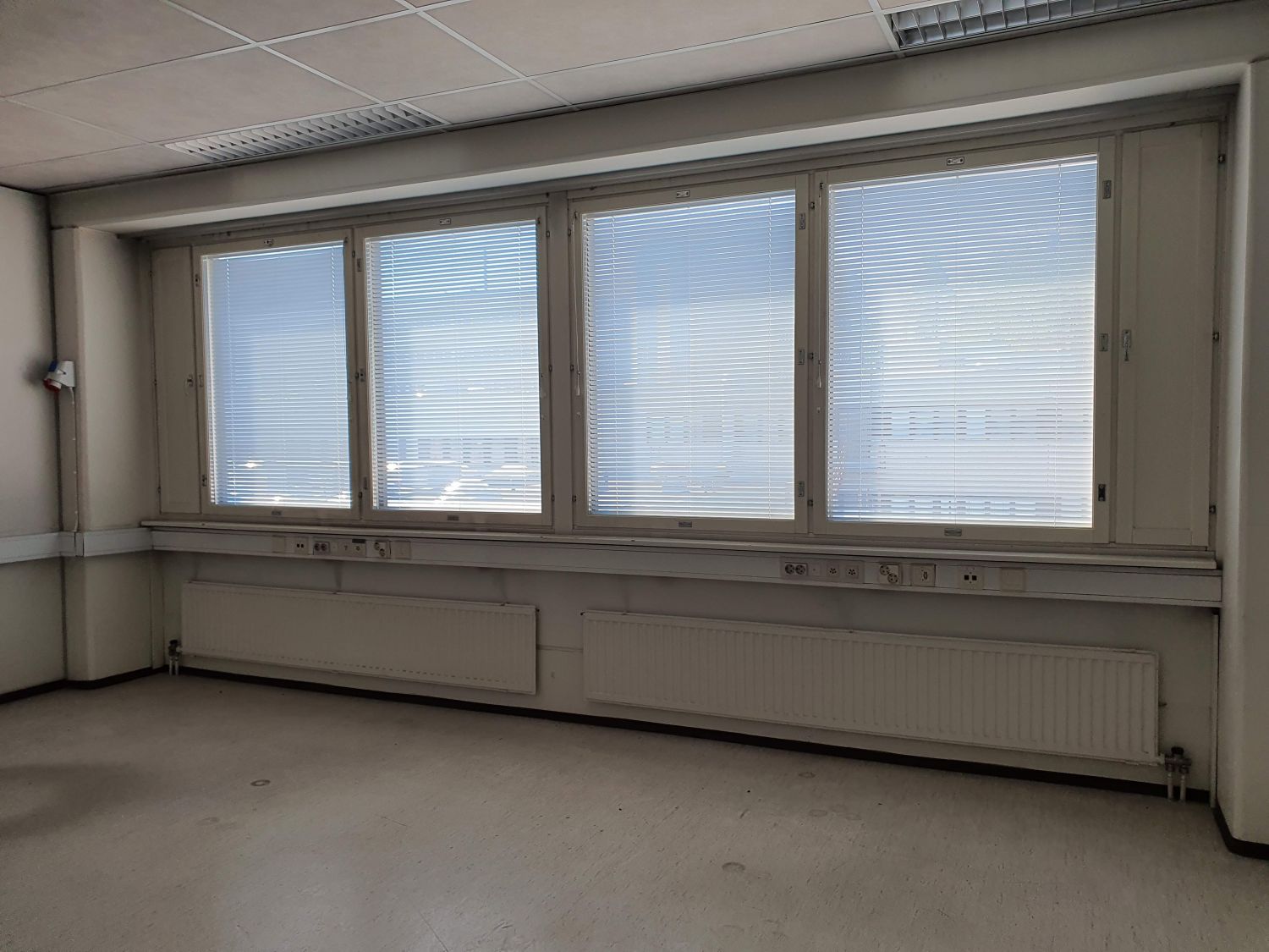 Pieni toimistohuone rakennuksen 3. kerroksesta. Tilat ovat ilmastoidut.