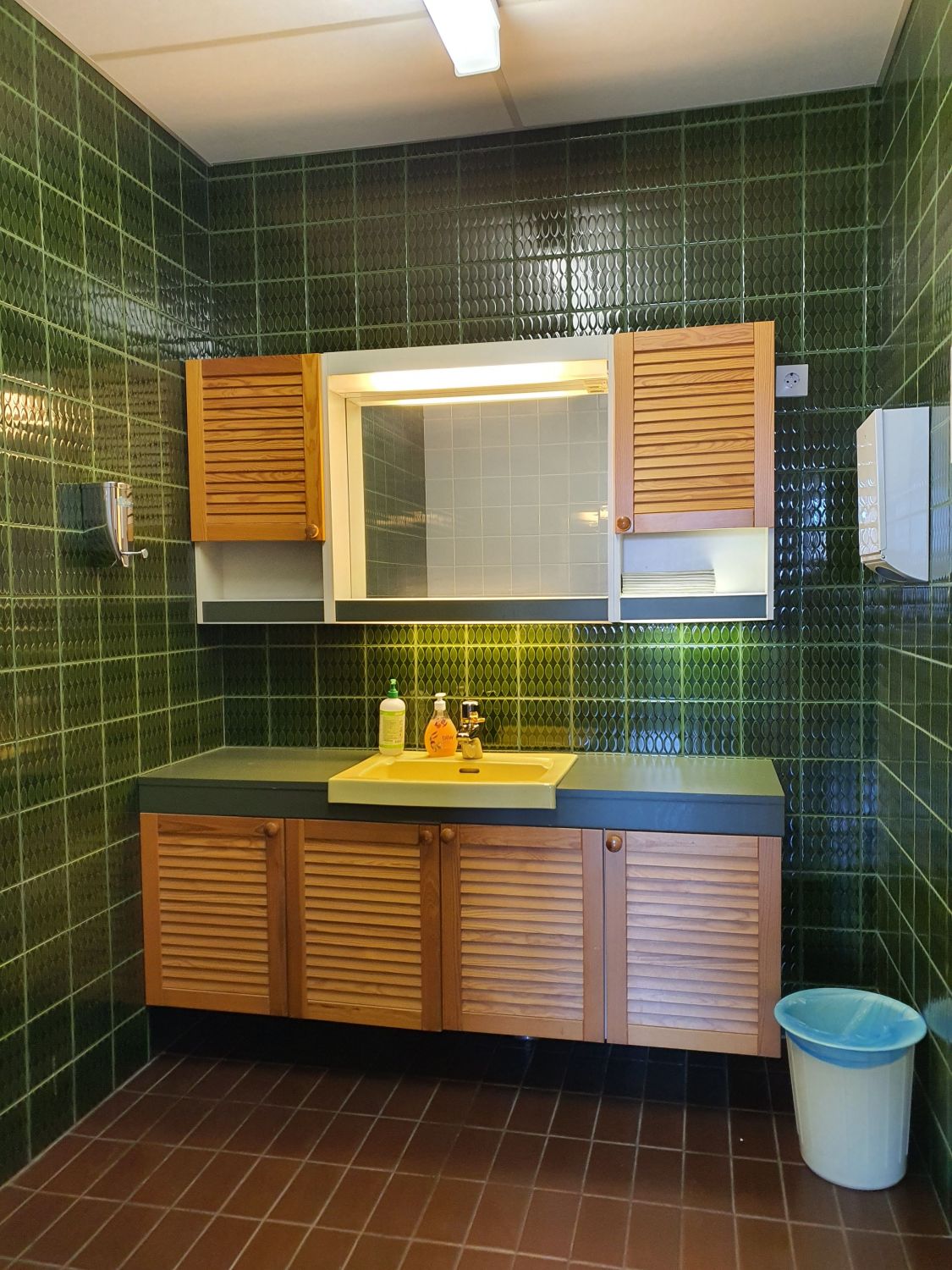Keittiö ja wc-tilat yhteiskäytössä.