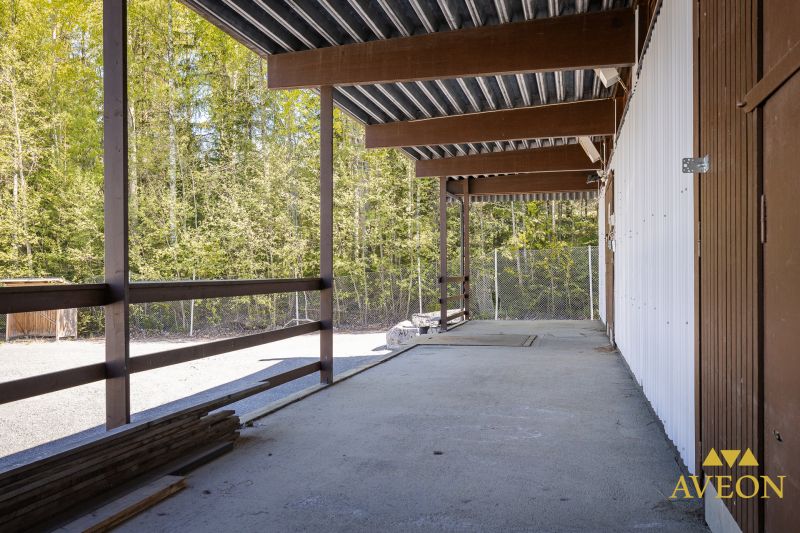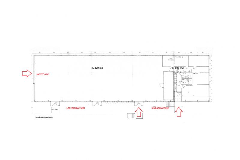 Päädyssä nosto-ovi ovi ja tilaan 1 kpl lastauslaitureita, toinenkin lastauslaituri saatavissa (ovi otettu pois käytöstä). Aidattu piha-alue.