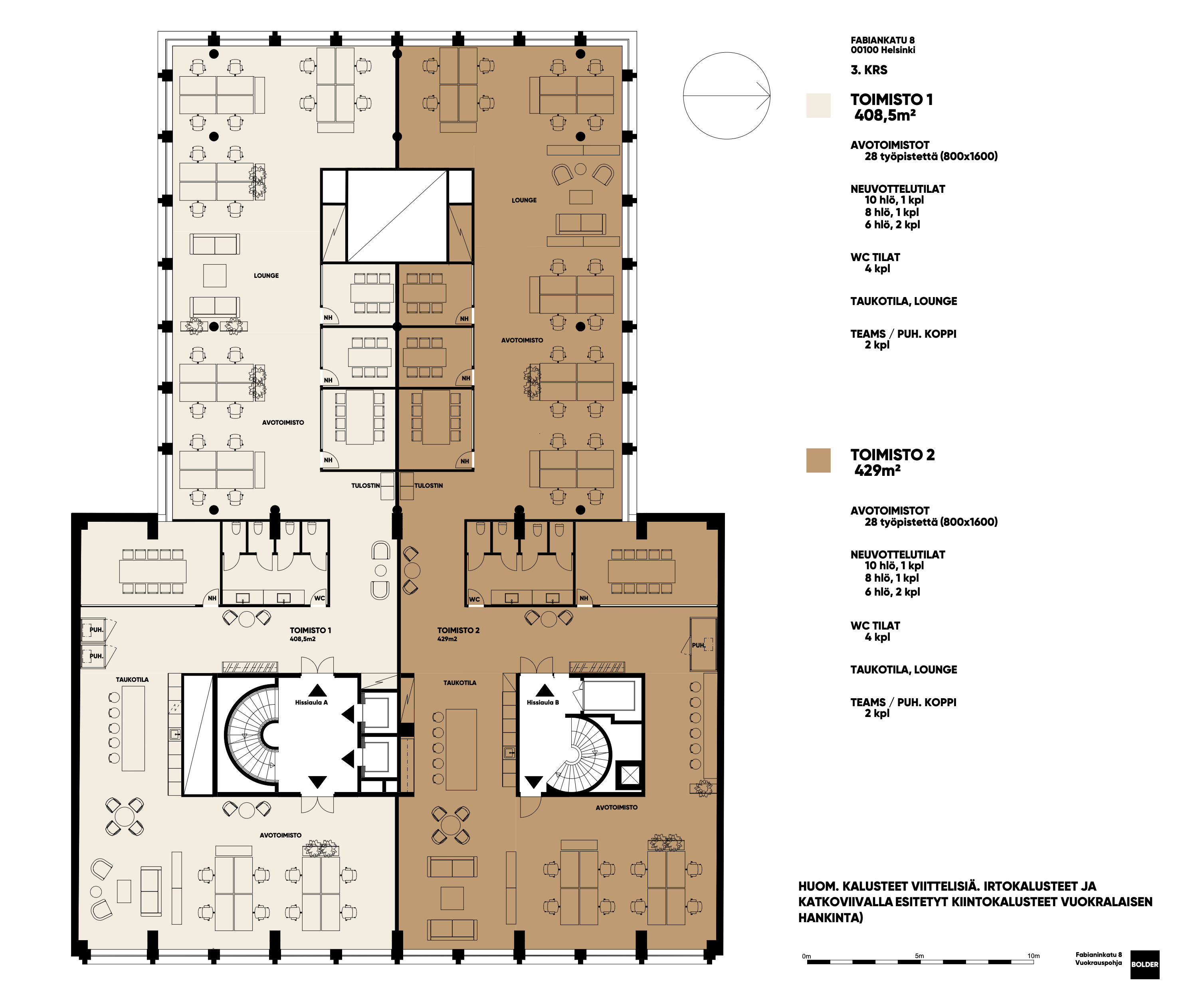 Kolmannen kerroksen, 2026 valmistuva toimisto aivan Kauppatorin kupeesta.