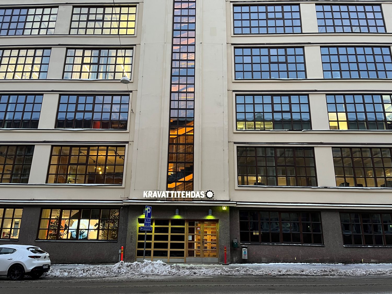 Kravattitehtaalla on aulapalveluiden ja ihanan lounasravintolan lisäksi käyttäjien vuokrattavissa yhteensä seitsemän erikokoista neuvottelutilaa, pysäköintipaikkoja, sosiaalitilat sekä pyöräparkki. Kuivatushuonekin vaatteille löytyy jos tulet pyörällä tai juosten.