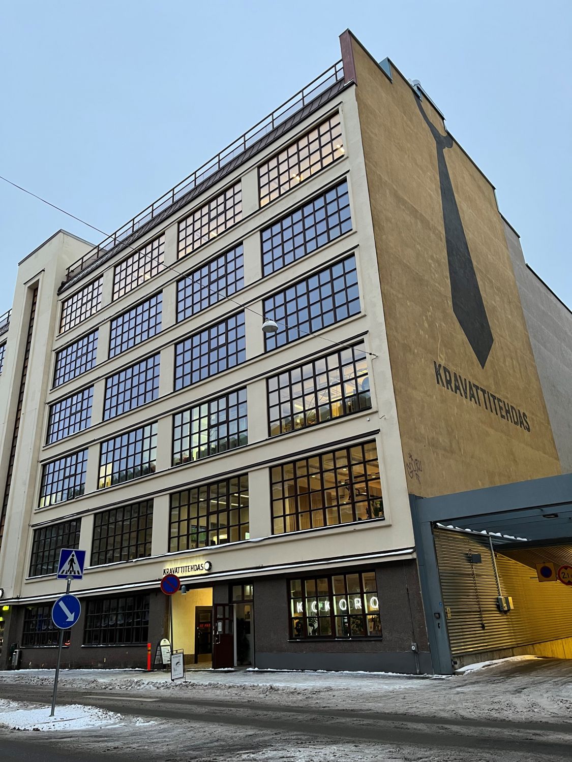 Vuonna 1929 Helsingin Kutomo ja Kravatti Oy:n upouusi pääkonttori ja tuotantolaitos – Kravattitehdas - valmistui Elimäenkadulle Vallilaan. Tämä 379,5-neliöinen tila sijaitsee Kravattitehtaan vanhimmassa osassa (9A).