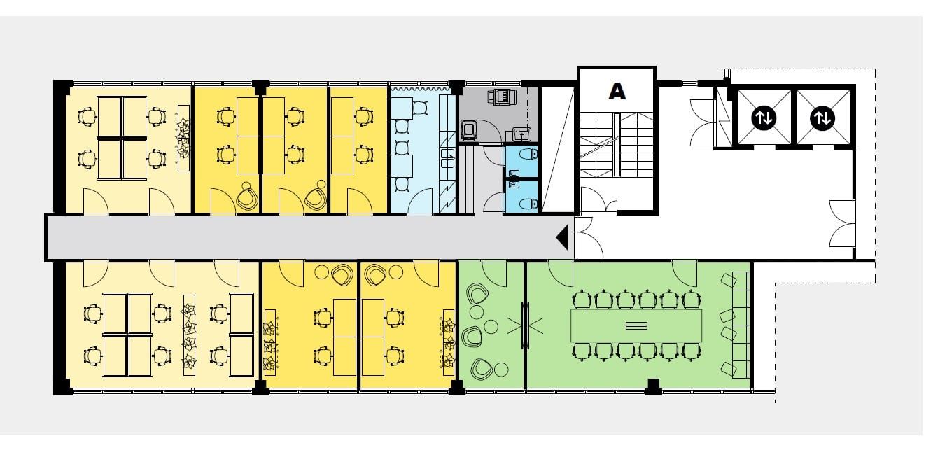 Tällä hetkellä tila on pääosin huonetoimistona ja neuvotteluhuoneina. Seuraavan käyttäjän niin toivoessa tila on mahdollista muokata kokonaan tai osittain myös avotilaksi tai isommiksi tiimihuoneiksi. Oma keittiö ja kaksi wc-tilaa sekä suihku.