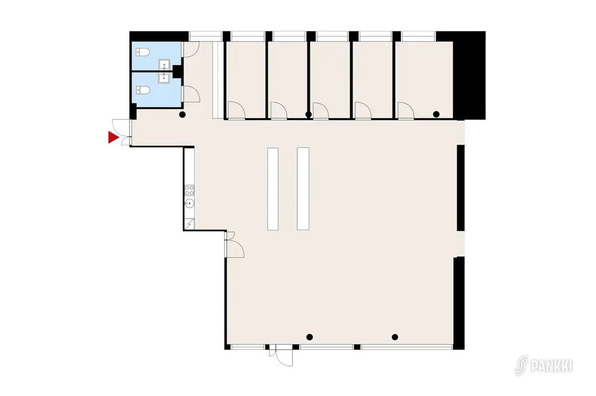 - Sisältää avotilaa, työhuoneita, keittiön ja wc-tilat
