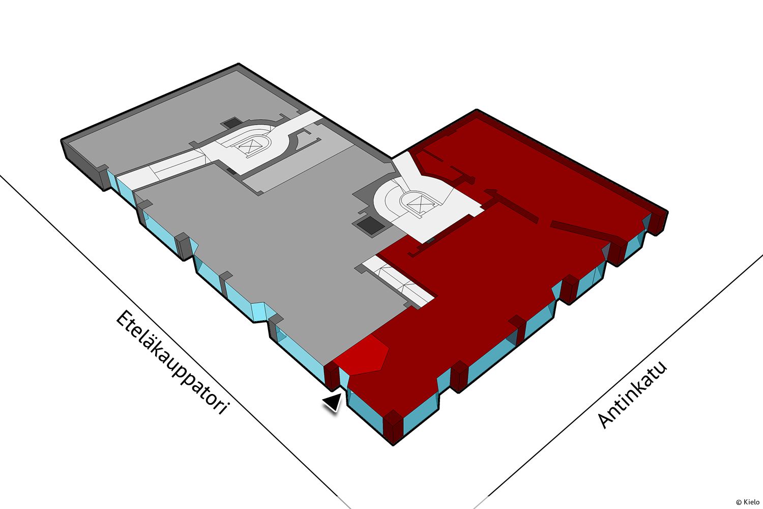 Vuokrattavana liiketila kauppatorin kulmalta, näkyvyyden kannalta parhaalla mahdollisella paikalla. Tila koostuu avo-/myymälätilasta, äänieristetyistä vetäytymistiloista, sosiaalitiloista, wc tiloista ja toimistohuoneista. Kohde sijaitsee hyvien kulkuyhteyksien varrella.
