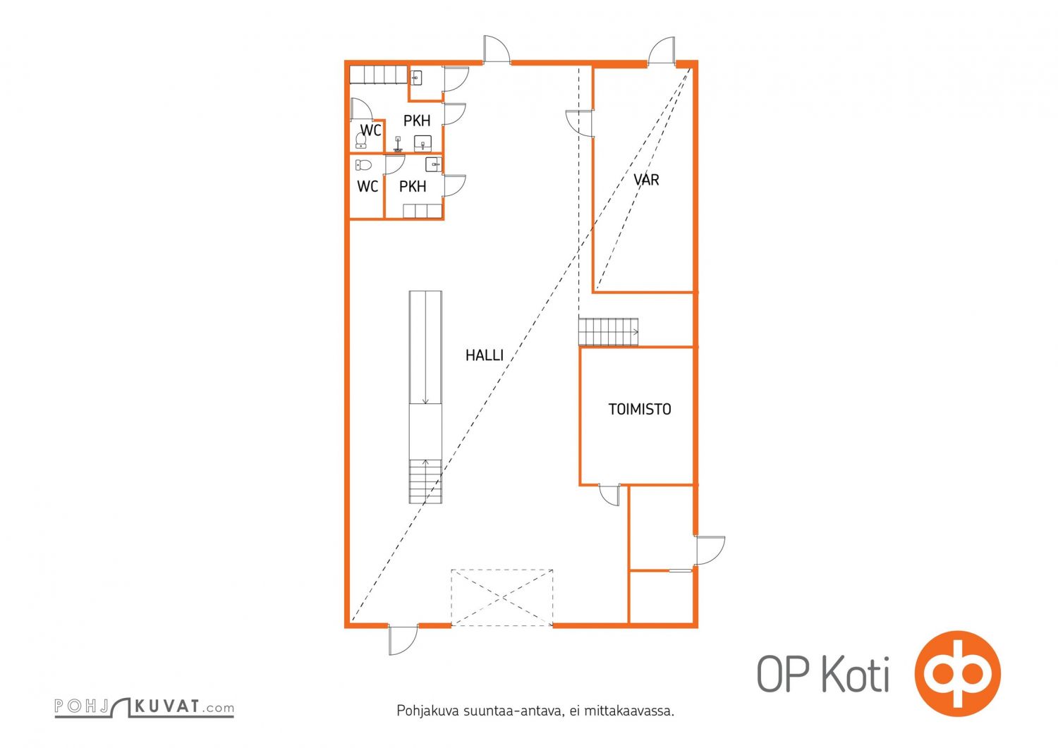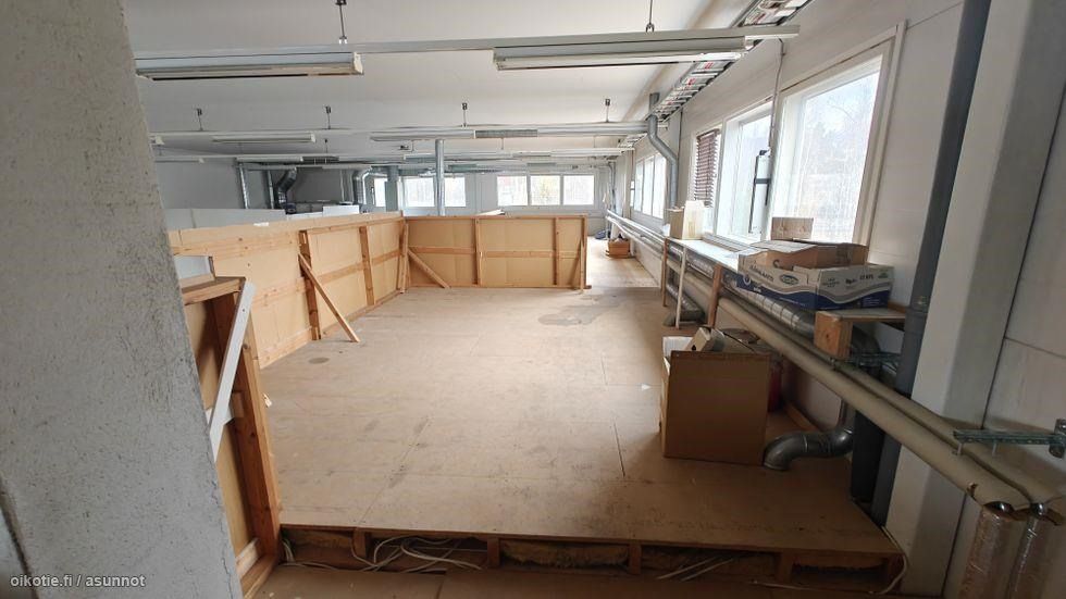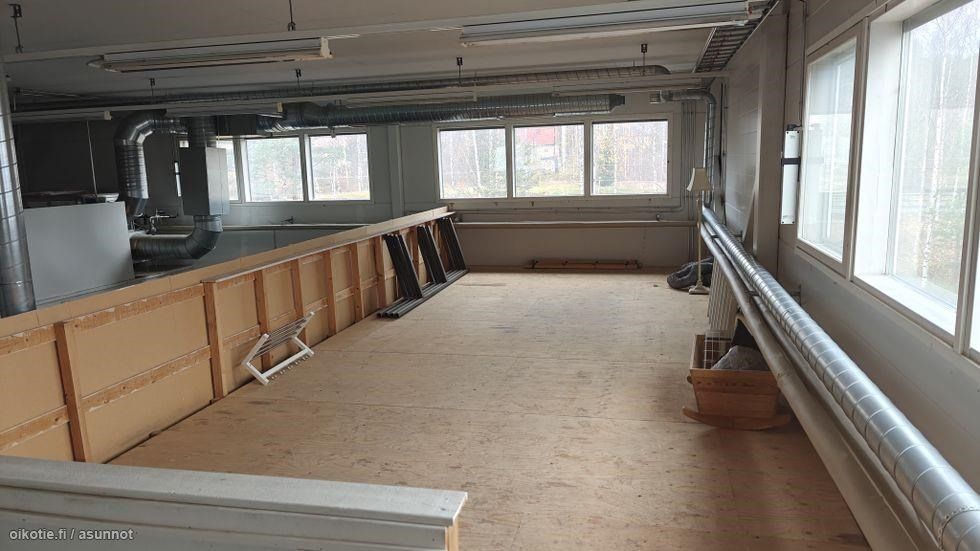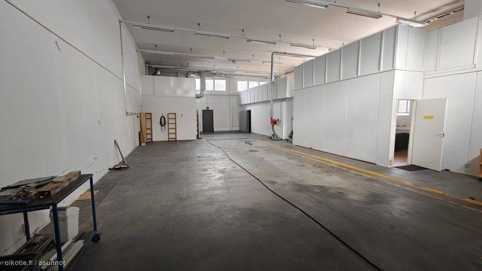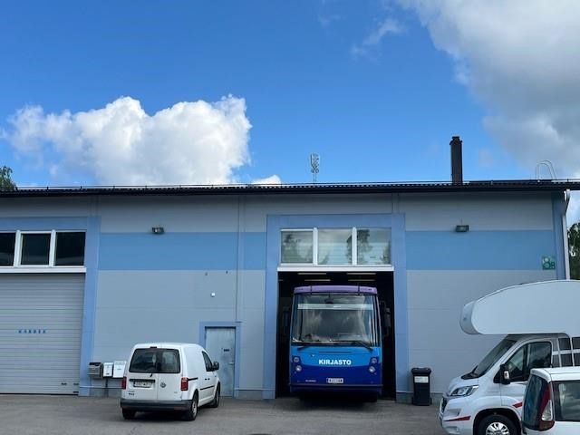 Hyvällä näkyvällä paikalla Vaajakosken moottoritien varressa tilava hallirakennus, jossa n. 20 m syvä hallitila, sos.tilat, toimisto, parvi ja varastohuone. Tilaan mahtuu esimerkkinä kaksi linja-autoa. Heti vapaa. Sovi esittely.