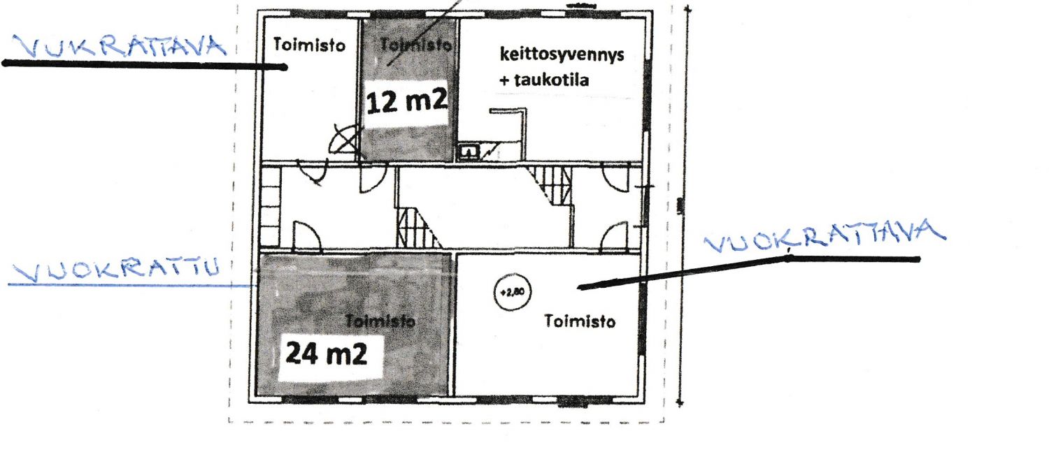 Myös juuri vapautunut 12 m2 toimistotila. Vuokra 150 €/kk