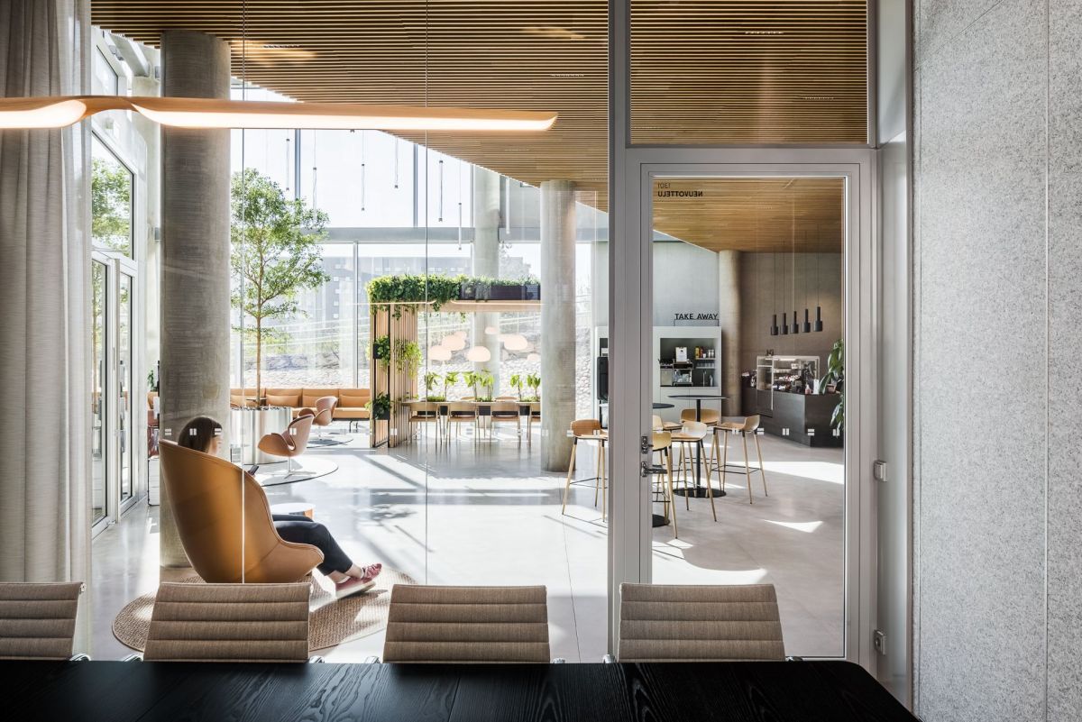 Energiatehokas, käyttöön ja tarpeeseen reagoiva valaistuksenohjaus, laadukkaat akustiikkaratkaisut, tasainen, vedoton viilennys ja optimoitu ilmanvaihto tukevat tehokasta, tuottavaa työskentelyä. Valoisa ja avara aula toimii koko talon vapaamuotoisena kohtauspaikkana.