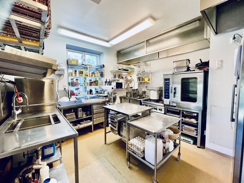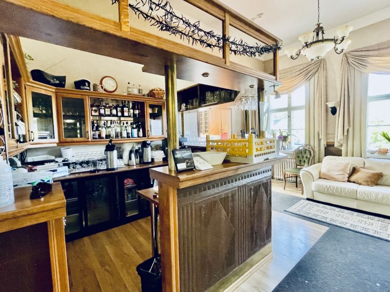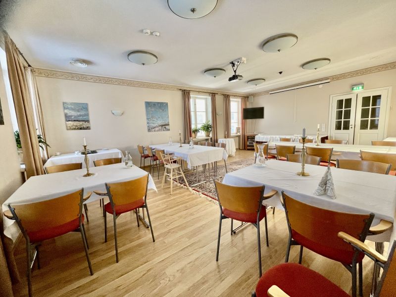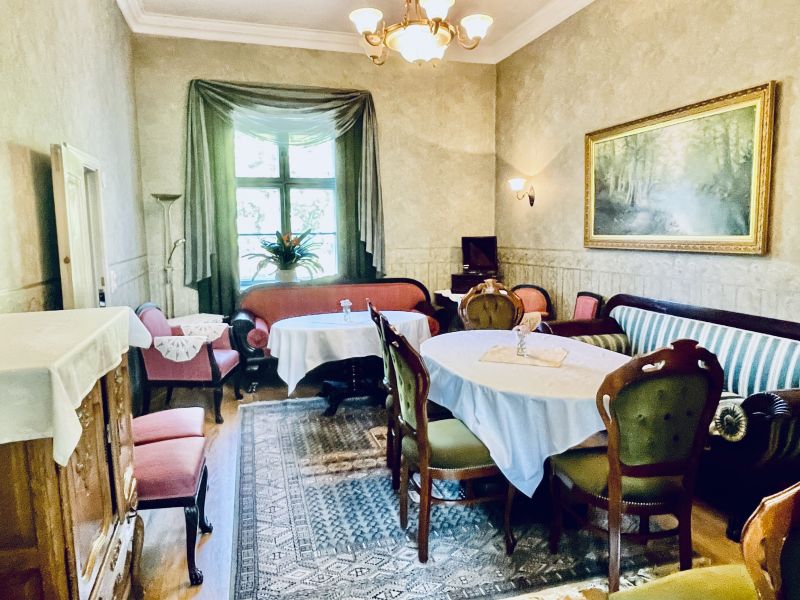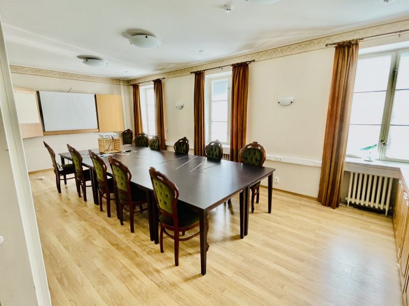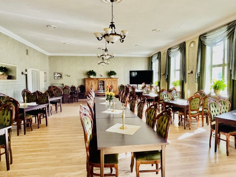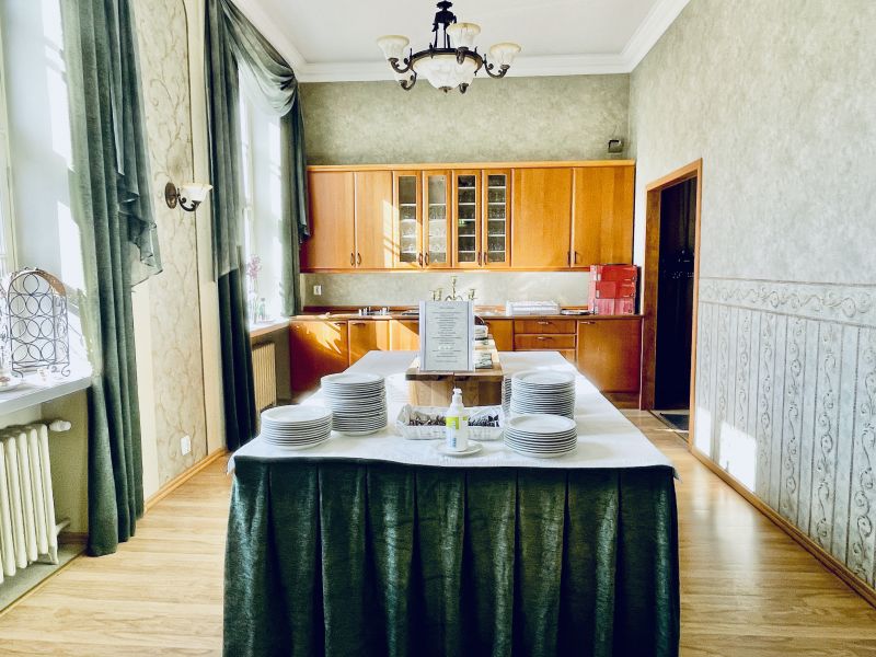 - Suuri juhlasali, tarjoilusali, kabinetti, pubi, keittiö huuvalla, eteisaula, naulakko ja varasto.