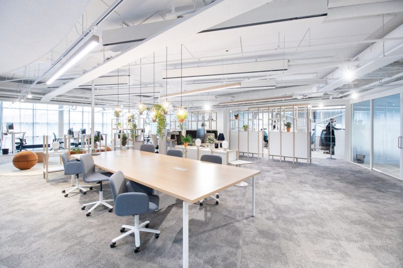 Toimisto koostuu pääosin avotilasta. Lisäksi tilasta löytyy yksi huone.