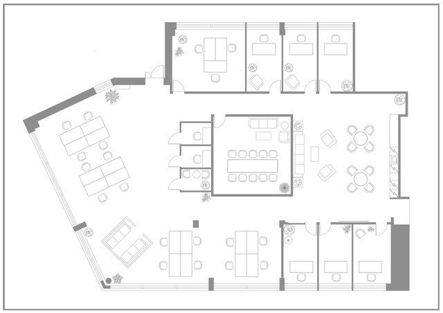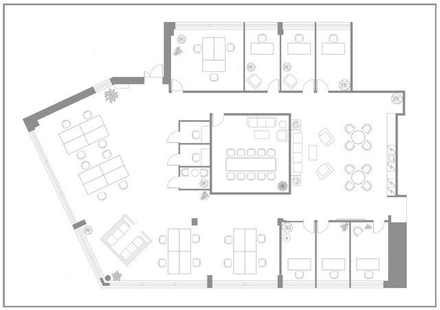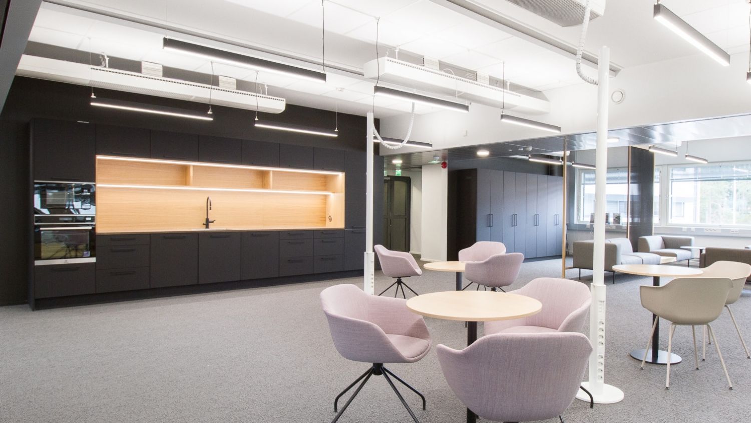 Toimistossa on avotilaa, tyylikäs keittiö, kokoontumistilaa ja työhuoneita. Tilaan voidaan tehdä asiakkaan toiveiden mukaan muutoksia.