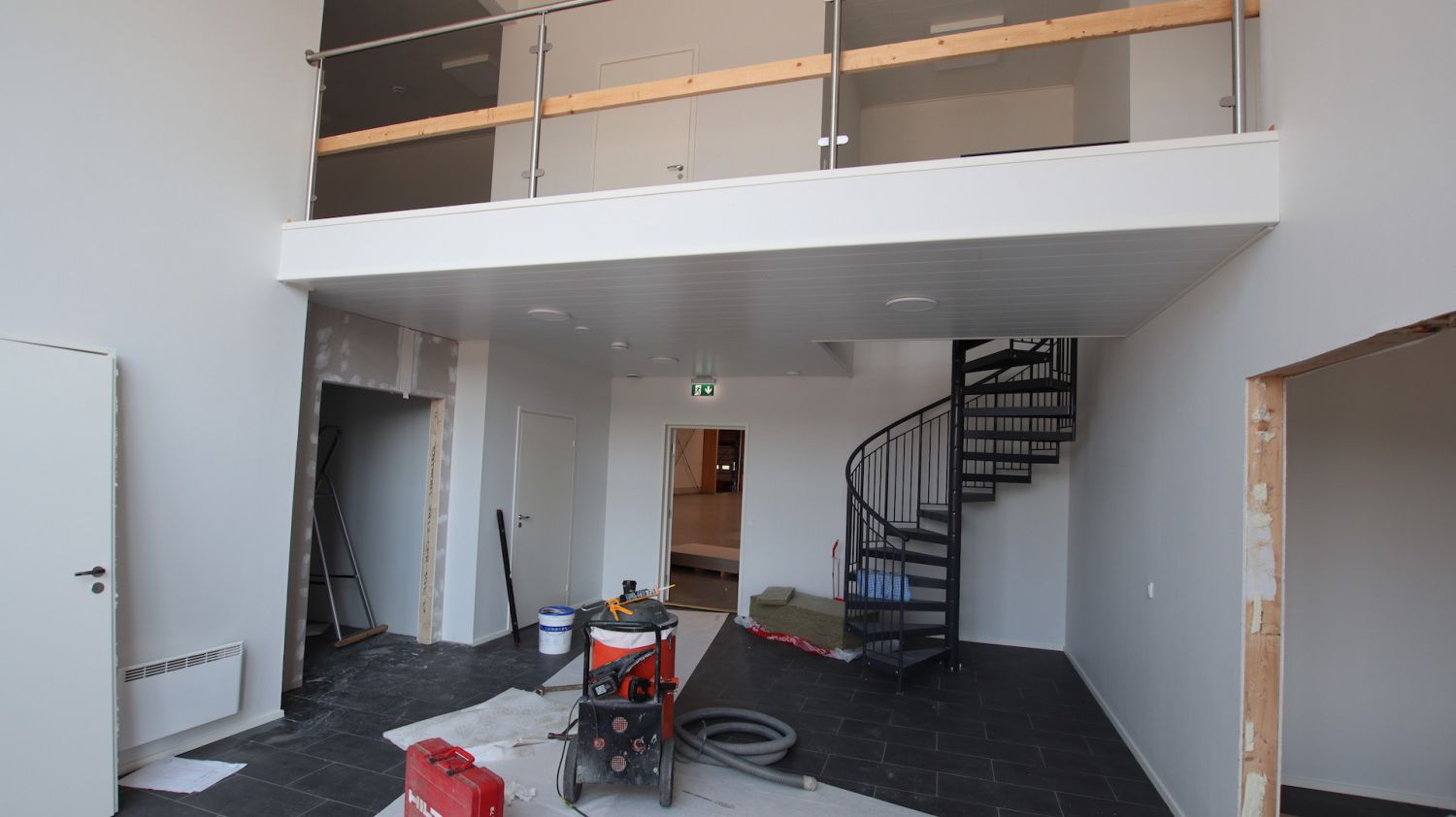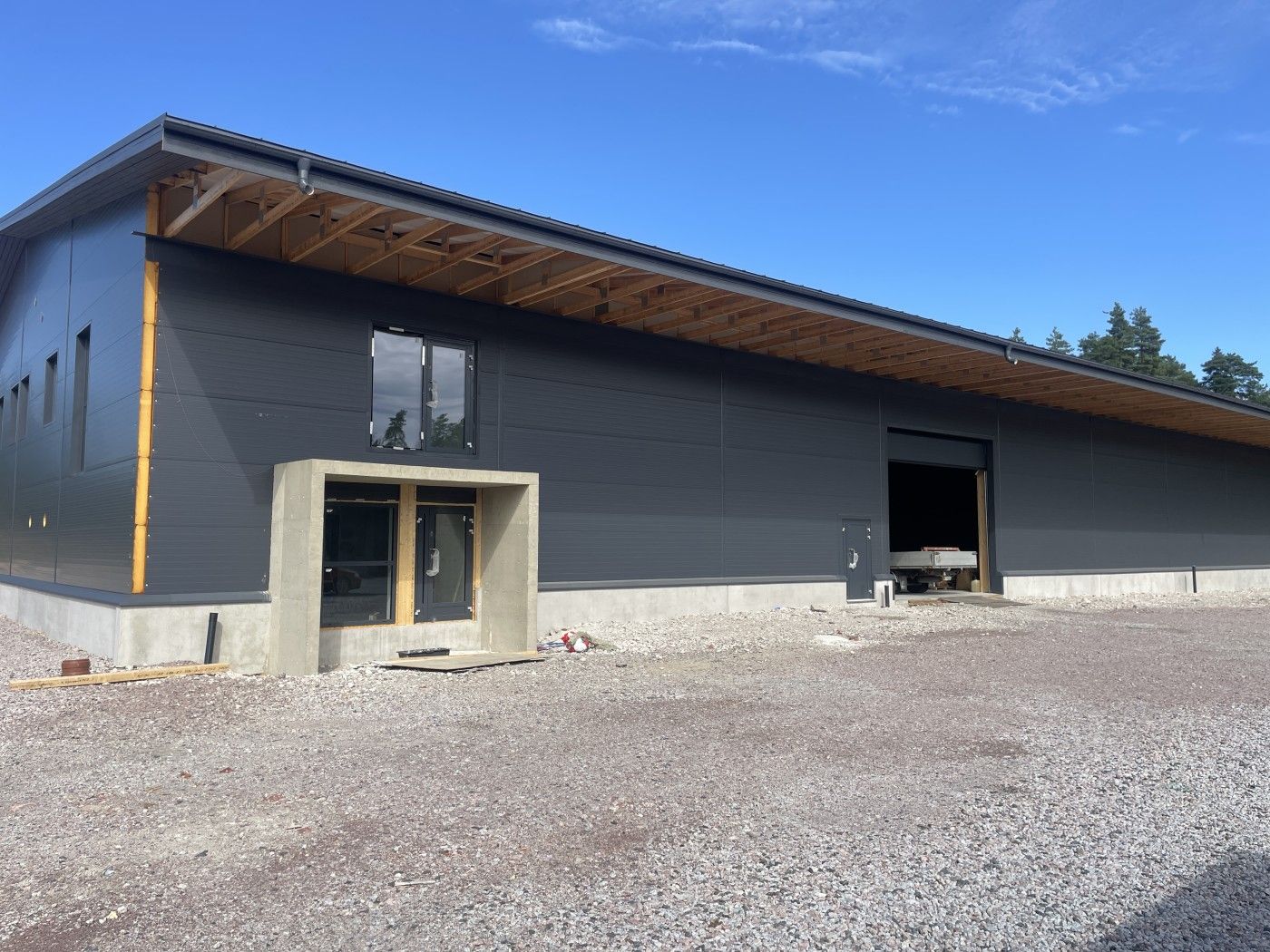 Tilakokonaisuus jossa 1 400m2 hallin lisäksi 300m2 toimisto- ja sosiaalitiloja kahdessa kerroksessa