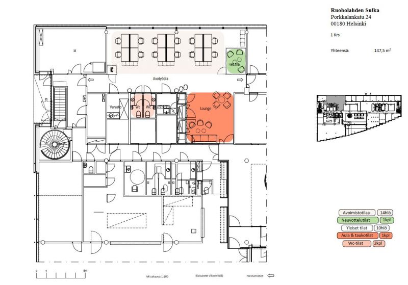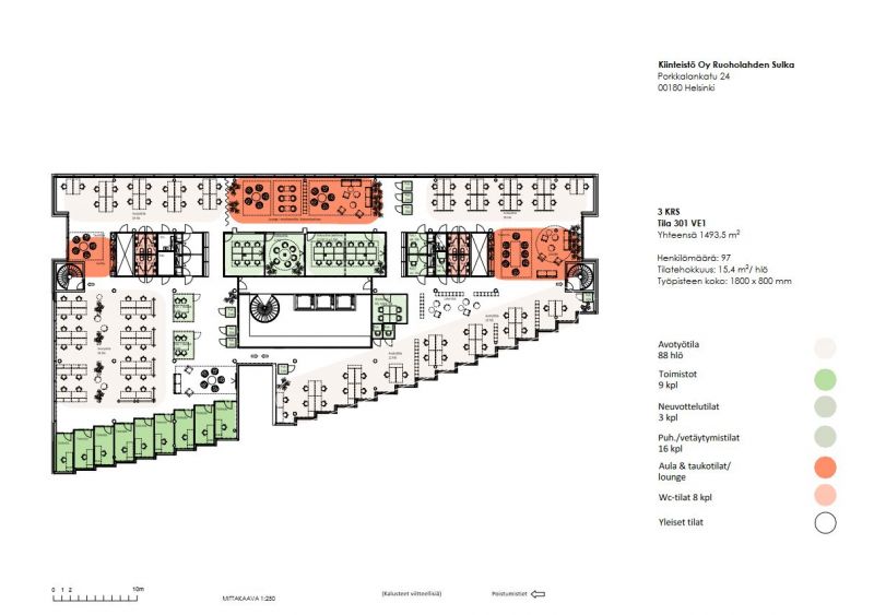 - 1493.5m², kolmannen kerroksen Tehokasta kombitoimistotilaa modernissa kiinteistössä. Isot valoisat ikkunat Porkkalankadun puolelle. Tilat tullaan räätälöimään vuokralaisen toiveiden mukaan.