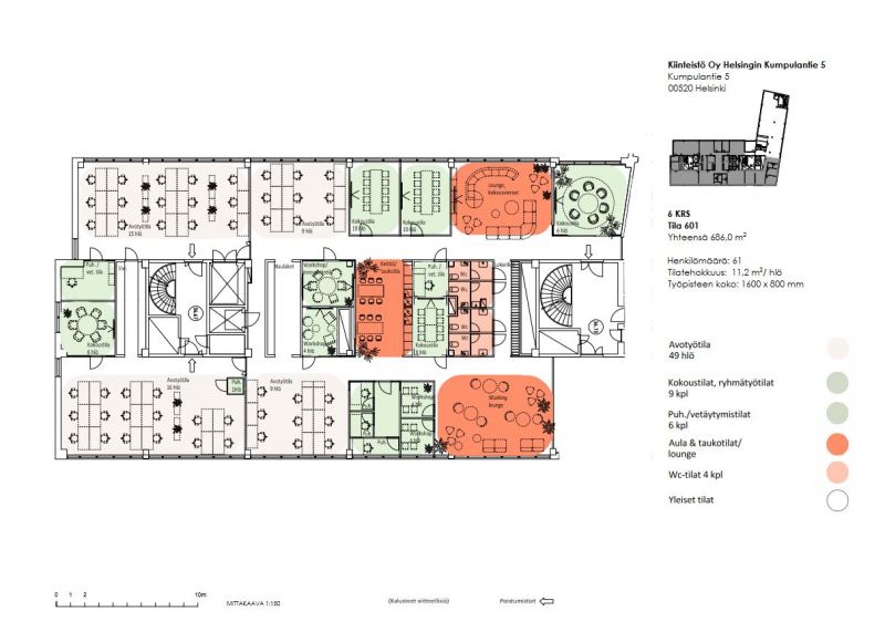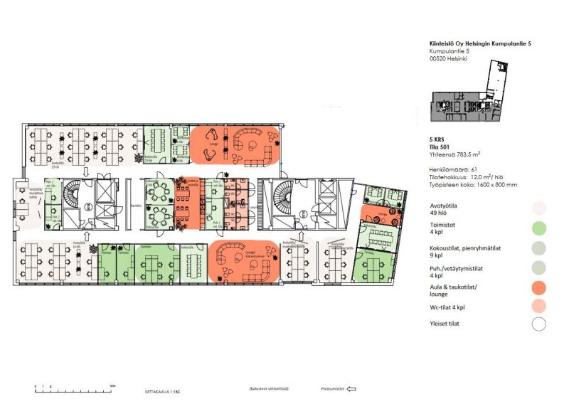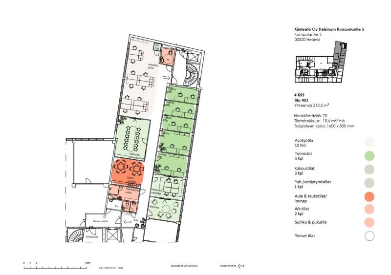 - 312m², 4 kerros. Muuttovalmis toimisto, jossa avotyöskentelytilaa ja valmiita neuvotteluhuoneita.