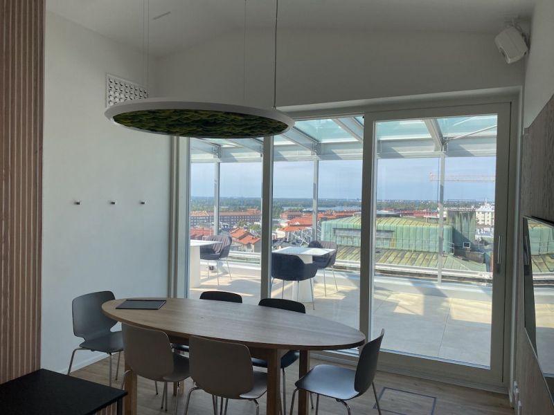 Talon ylimmästä kerroksessa upea Sky Lounge, jossa on hienot tapahtuma-, kokous- ja saunatilat.