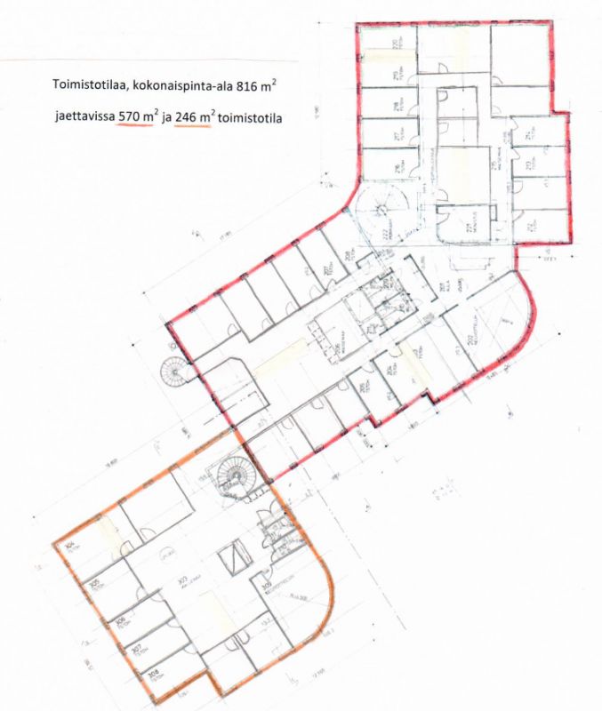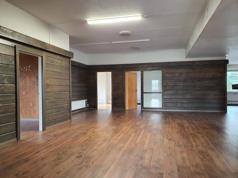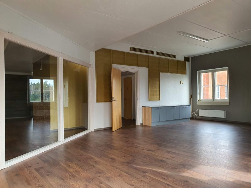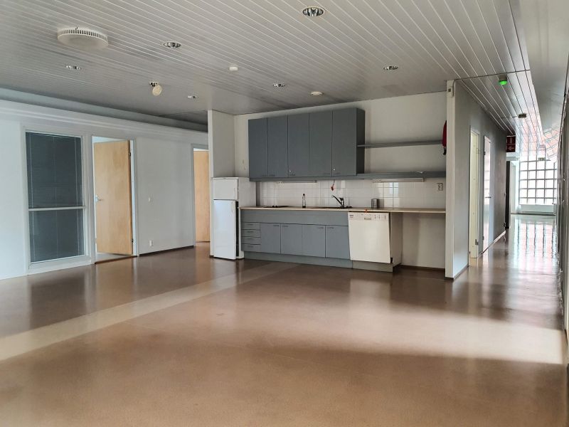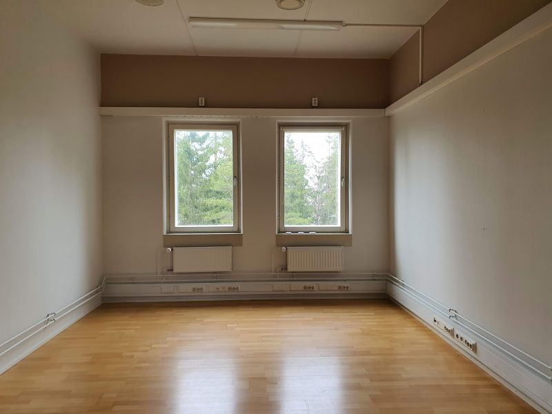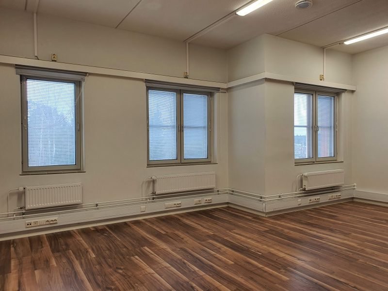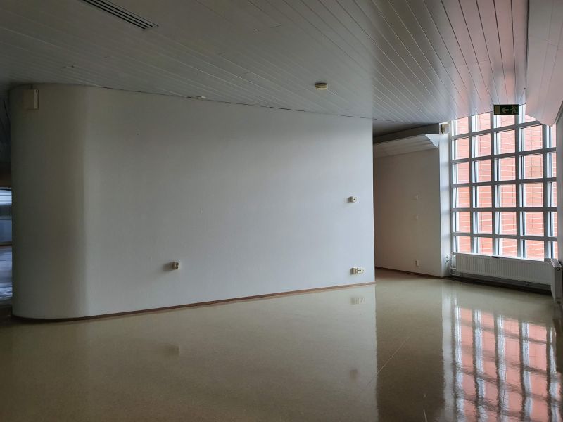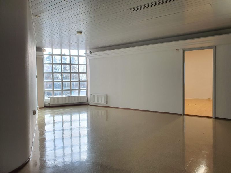 Tilassa pieniä ja isompia toimistohuoneita, neuvottelutiloja, reilun kokoinen aula, 2 keittiötilaa ja useita wc-tiloja. Tila muokattavissa vuokralaisen toiveiden mukaiseksi. Huonekorkeus n. 3 m.