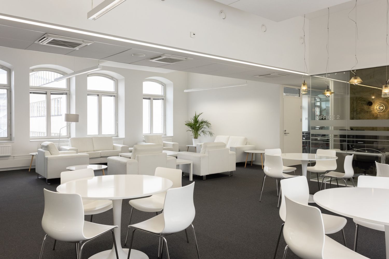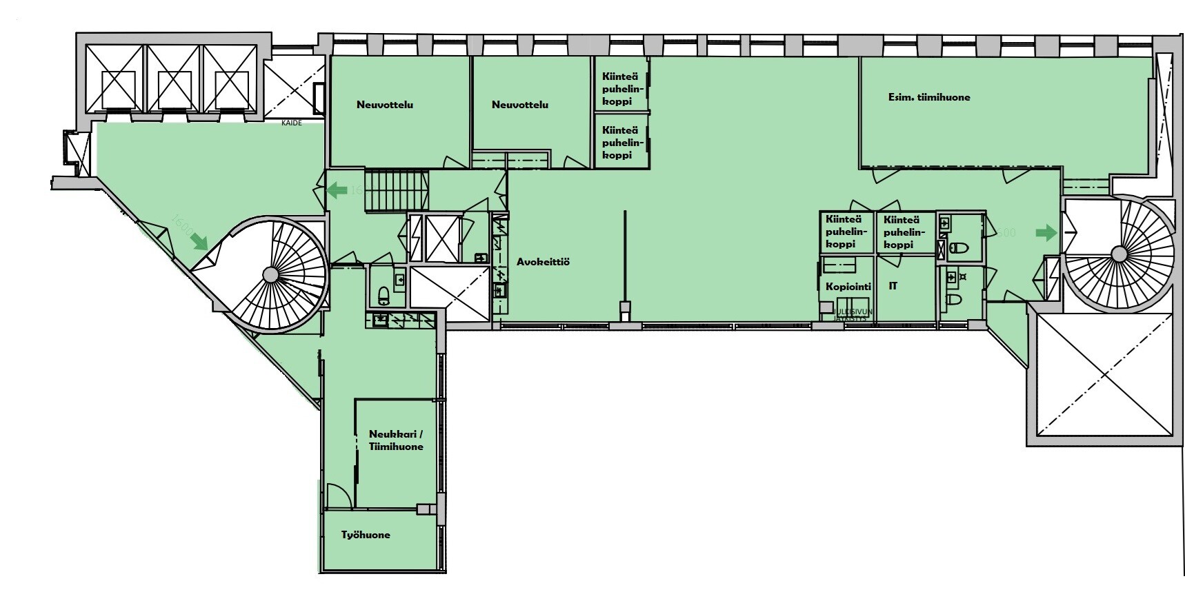 Tilassa avotilaa, kiinteitä puhelinkoppeja, kokous- ja tiimihuoneita.