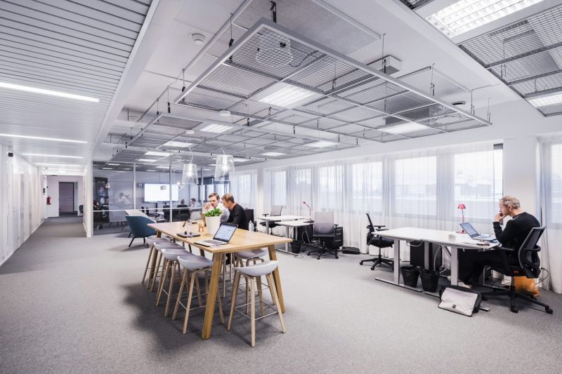 Ylimmän kerroksen toimisto, jossa on käytössä oma parveke. Tehokas toimisto avotilalla ja kahdella neuvotteluhuoneella.