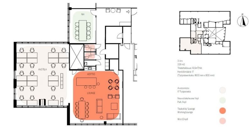 - 217.4m², 3 kerros Täysin muuttovalmis Aina Valmis toimisto Leppävaarassa. Tähän laadukkaaseen Aina Valmiiseen toimistoon Stella Business Parkissa on helppo ihastua. Rohkeat värivalinnat, laadukkaat ja vastuulliset materiaalit sekä toimivat tilaratkaisut puhuvat puolestaan. Tilasta ei puutu valoa ja se taipuu monentyyppiseen käyttöön. Tilasta löytyy yksi neuvotteluhuone, keittiölounge, avotoimistotilaa, yhteisöllinen työskentelyalue sekä kaksi wc-tilaa. Toimisto on valoisa lukuisten ikkunoiden johdosta.