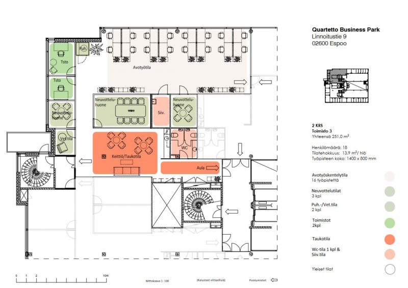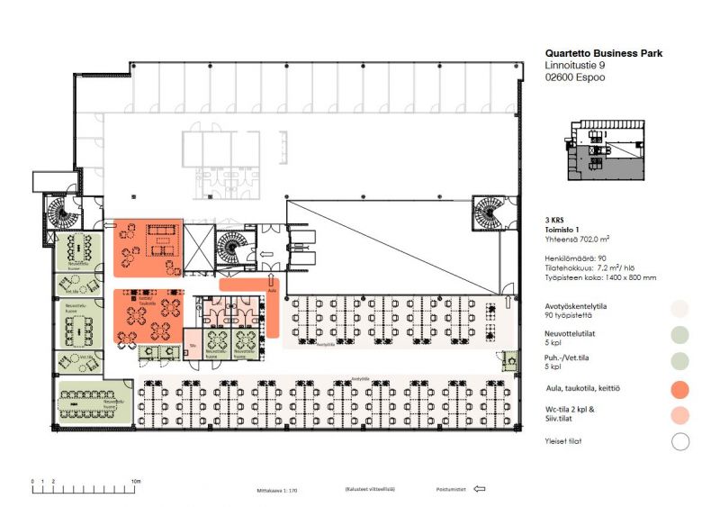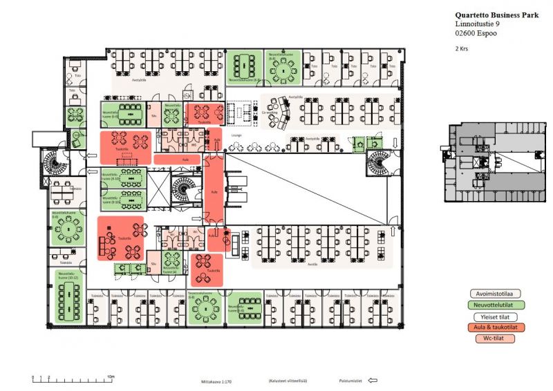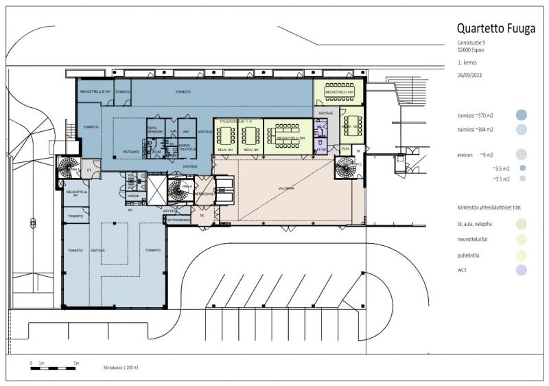 - 1333m² Valoisa 5. kerroksen toimitila. Tila on kokonaisuudessaan 1333m2, mutta mahdollista jakaa pienempiin kokonaisuuksiin 618 m² ja 685 m²