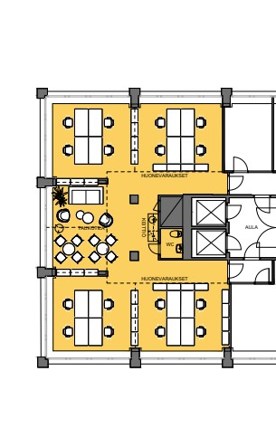 Kohteena lähialueella on käytettävissä laajasti keskustan keskustan alueen kivijalkapalvelut lounasravintoloineen. Lähistöllä toimii myös päivittäistavara-ja erikoistavarakauppoja.