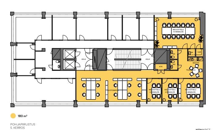 Ruoholahdenkatu 14 sijaitsee keskustan tuntumassa hyvien yhteyksien varrella. Kiinteistöä on uudistettu aulan ja tilojen osalta ajan saatossa ja se tarjoaakin viihtyisät toimitilat hyvien yhteyksien varrelta. Kiinteistöstä on tarjolla viidennen kerroksen toimistotila 180m2, joka tarjoaa viihtyisät tilat monenlaiseen tarkoitukseen. Tila on toteutettu tällä hetkellä pääosin avotoimistona ja muutamien huonetoimistojen yhdistelmällä. Tilaa on mahdollista jakaa esimerkiksi tilanjakajilla ja verhoilla useampaan kokonaisuuteen. Tilasta löytyy myös omat wc-tilat sekä viihtyisä keittiökulmaus. Kohteen tilat voidaan remontoida vuokralaisen toiveiden mukaisesti ja esimerkiksi ikkunapinnat voidaan jättää joko puun väriseksi tai maalata valkoiseksi.
