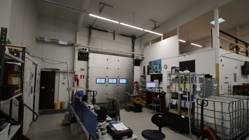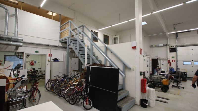 Halli noin 450 m2: vuokra 2196 €/kk. Nosto-oven koko 3,4 metriä korkeus ja leveys 3,4 metriä. Rakennus käsittää pääosin avointa hallitilaa. Kuvissa näkyvät huoneet puretaan tarvittaessa suurimmaksi osaksi pois.