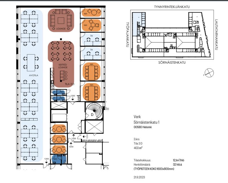Vuokrattavana 403 m2 kokoinen kokonaisuus persoonallista toimitilaa Kalastaman alueelta. TIla sijaitsee kohteen 3:ssa kerroksessa ja tarjoaa upeat näkymät Teurastamon suuntaan. Tilan pohjaratkaisu räätälöidään vuokralaisen toiveiden mukaan. Tilaan on mahdollista toteuttaa esimerkiksi avotilan ja huonetoimistojen yhdistelmää. Kohteen atriumpiha tarjoaa tilaan persoonallisuutta ja runsaasti valoa. Kohteen vuokralaisille toteutetaan myös tyylikäs keittiö- ja loungealue.