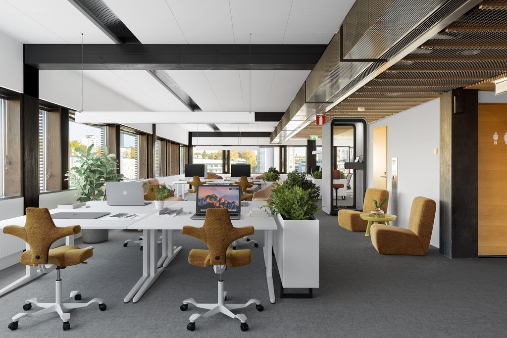 Siistiä laadukkaasti uudistettua toimistotilaa Espoon Tapiolassa.
