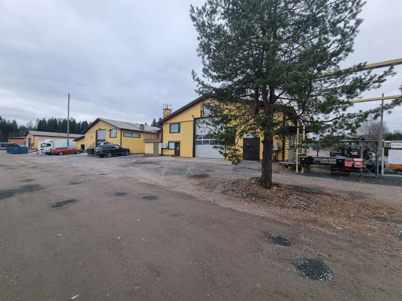 Rakennukset: vuosina 1970-1990 rakennettu kolmiosainen varasto-tuotantorakennus: 2 kpl noin 14,5 x 40 m (n. 580 m2) hallia ja välissä noin 13,5 x 31,90 m halli (359 m2). Lisäksi muita rakennuksia. Parhaan kuvan kohteesta saa paikan päällä. Sovi näyttö p. 050-1598.