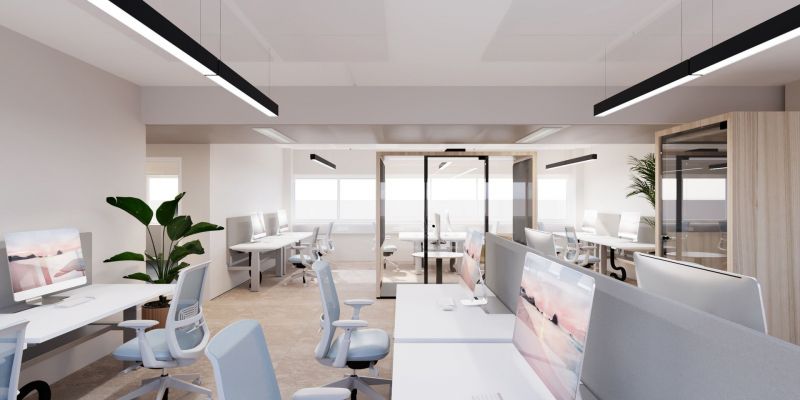 Tämä 209,5 m²:n tila on suunniteltu nykyaikaisen yrityksen tarpeisiin, tarjoten runsaasti luonnonvaloa ja luoden siten ihanteellisen ympäristön luovalle työskentelylle. Tilasta löytyy erillinen keittiö ja lounge-alue. Neuvottelu ja vetäytymistilat rajaavat mukavasti tilan sosiaalisen työskentelyn ja rauhallisemman työskentelyn välillä. Lisäksi tilasta löytyy kaksi erillistä wc-tilaa.