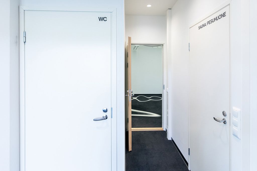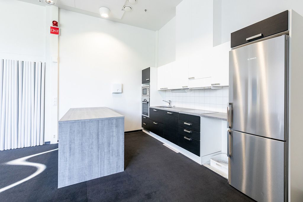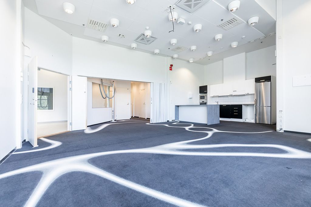 Avara, valoisa ja korkea tila sopii toiminnalliseen työskentelyyn tai avotoimistoksi. Toimitilaan kuuluu sauna ja kylpyhuone, jossa on poreamme sekä tilava tyylikäs keittiö. Toimistotilan vieressä on lämmin varastotila 70,6m², jonka voi tarvittaessa yhdistää avonaiseen tilaan. Lisäksi tilaan kuuluu noin 18,3 m² yhteiseteinen naapurivuokralaisen kanssa. Tilaan voidaan kulkea suoraan sivuportaikkoa pitkin. Korkeat lasiseinät avautuvat Leväsentien suuntaan ja niihin saa näkyvät mainosteippaukset.