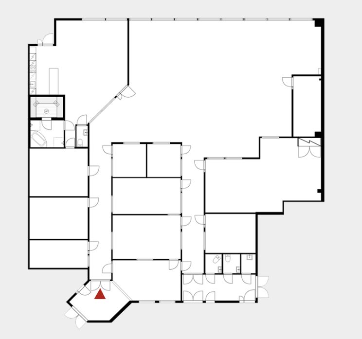 Tämä 574m² liiketila sijaitsee kiinteistön 2. kerroksessa. Tila koostuu erillistä toimistotiloista (9 kpl), jotka on äänieristettyjä. Tila sopii mm. terapiavastaanotoksi. Yksittäisten huoneiden koot ovat 9m² - 24m².