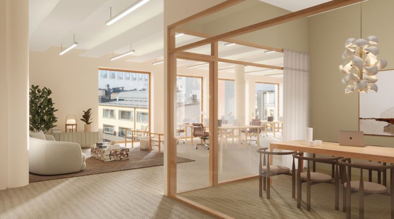 Vuokrataan toimistotilaa Fabianinkatu 8 kiinteistöstä. Kiinteistö saneerataan ja se valmistuu 2026 tammi-kesäkuun aikana. Kalustettu pohjakuva on esimerkkipohja 6. kerrokseen sovitetusta tilasta 651,5 m2. Visualisoinnit eivät ole kuvauksia yksityiskohdista tai väreistä.