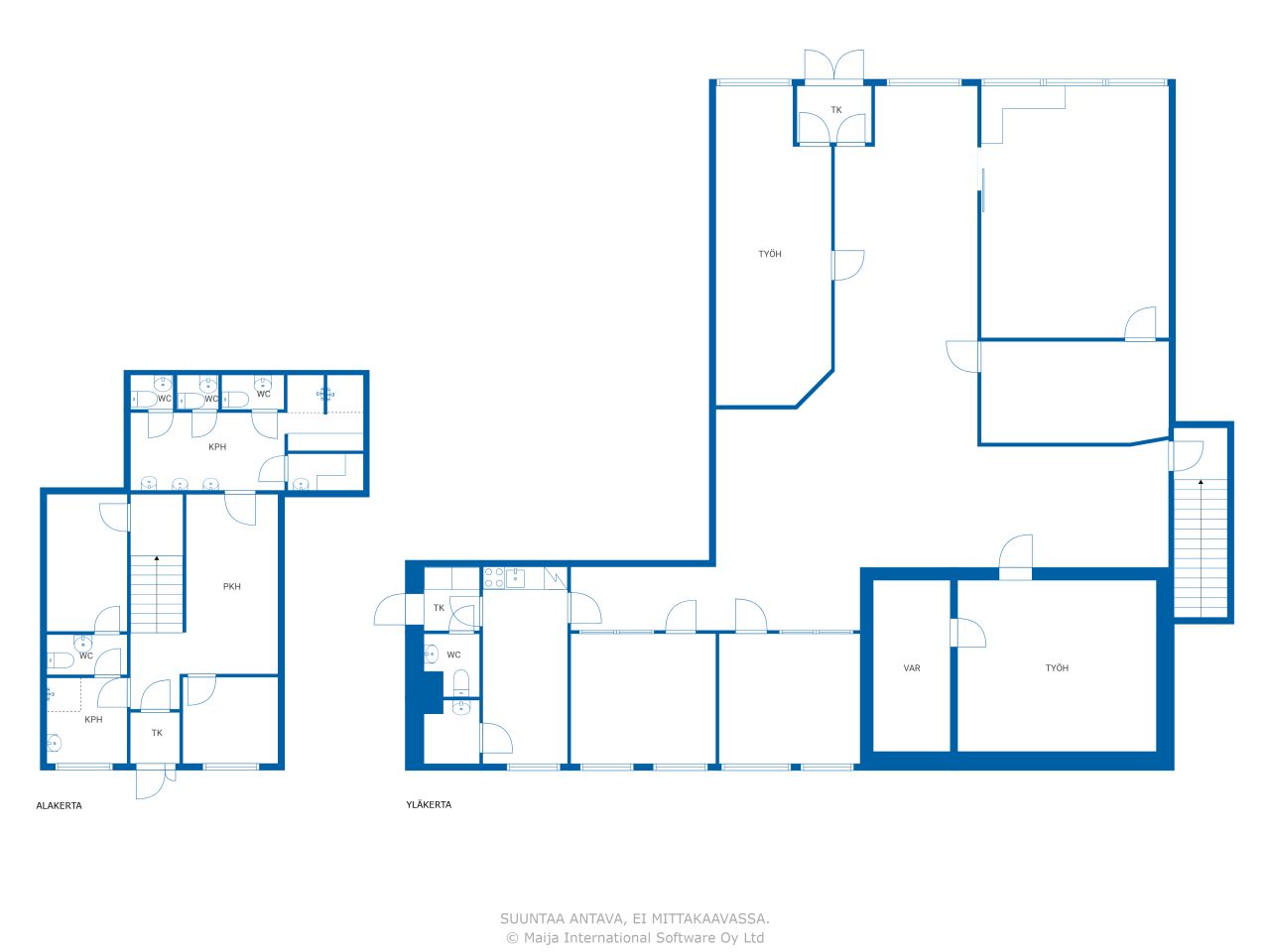Yleisettilat: ulkoiluvälinevarasto, varasto, sauna, väestönsuoja, kylmäkellari.