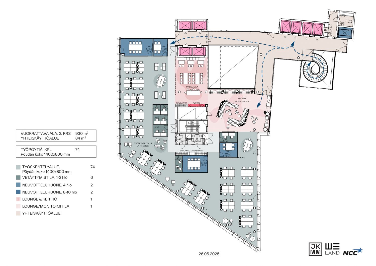 Tervetuloa osaksi We Landin elävää yhteisöä – paikkaan, jossa liike-elämä kohtaa korkeat ESG-arvot ja huippumodernit tilat. Kesälllä 2024 valmistunut We Land on lähes täyteen vuokrattu. Vapaana ovat vielä 300, 415, 701 ja 930 neliön toimistotilat, jotka on yhdistettävissä myös 1800 neliön tilaksi.