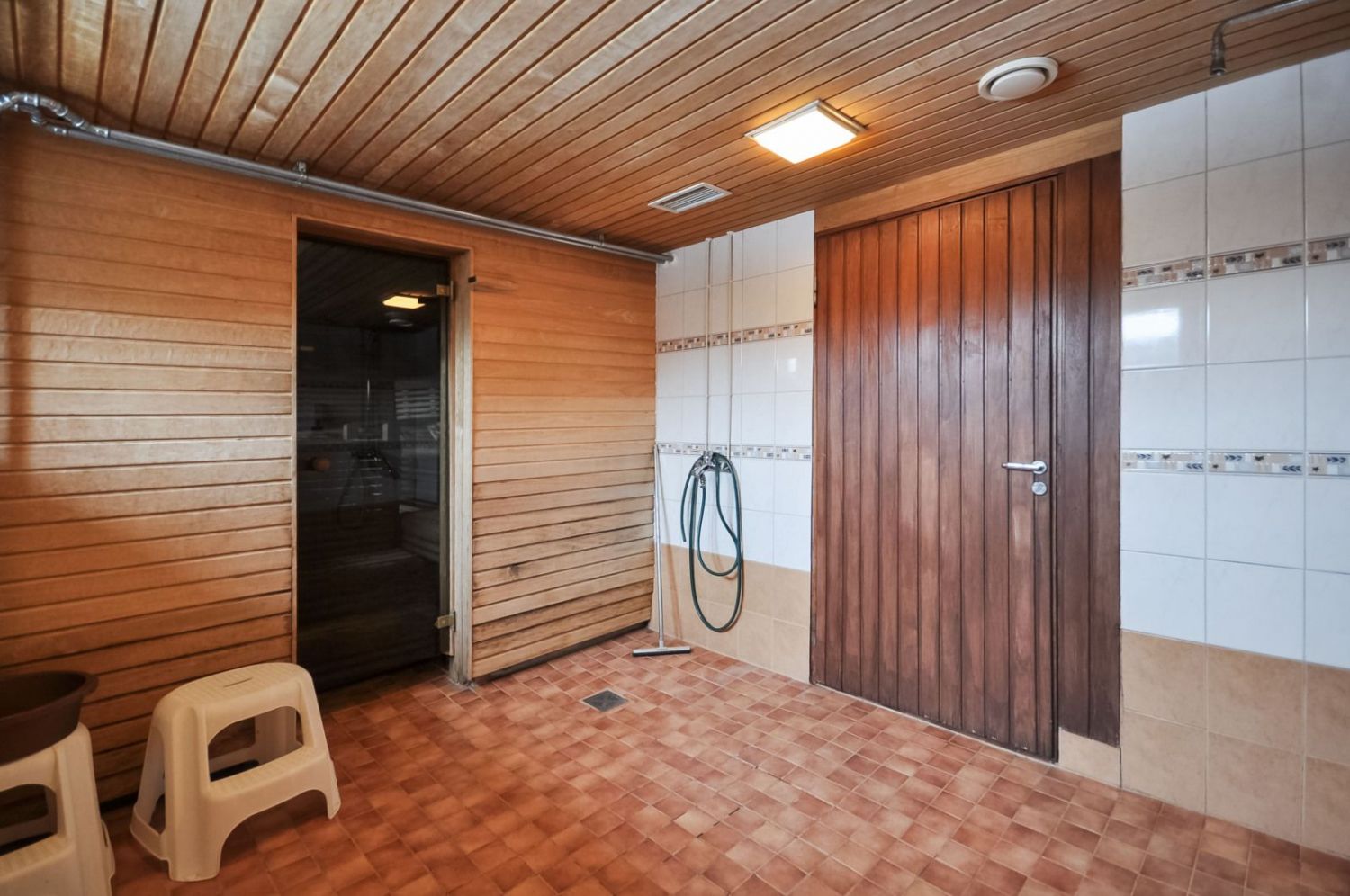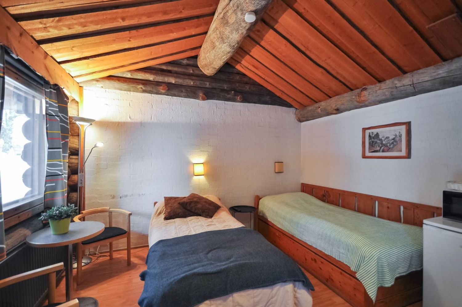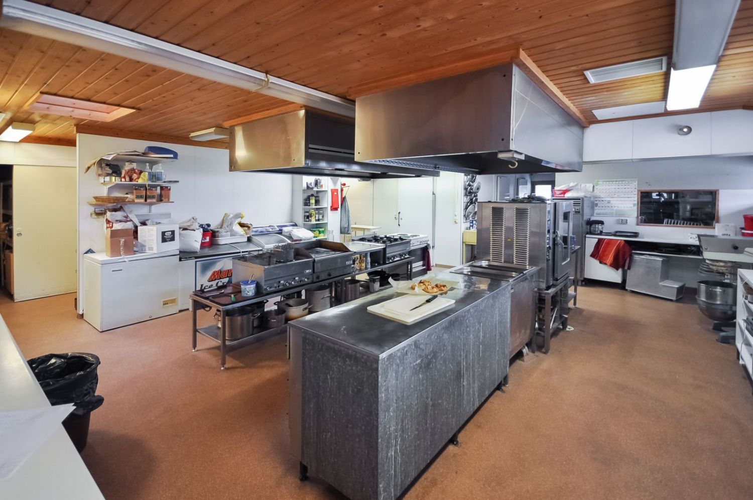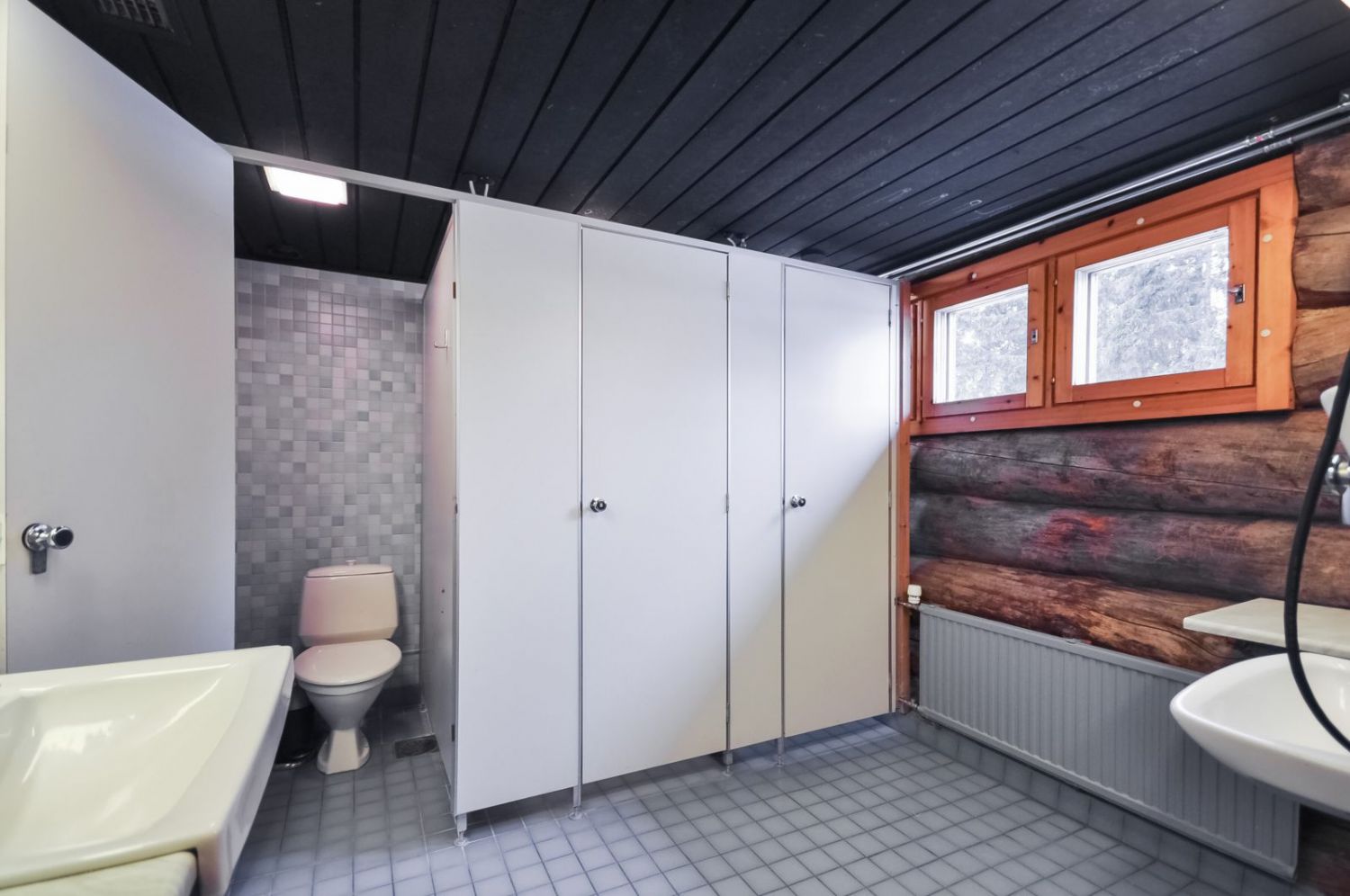 Hirsirakennus, paljas hirsi luo tunnelmaa läpi rakennuksen niin ruokailusalissa kuin saunassakin. Ammattilaistason keittiötilat.