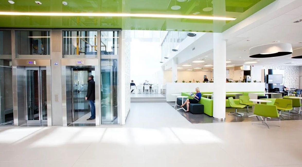 Albergan B–E-taloja yhdistävä valoisa atrium tarjoaa mahdollisuuden taukoihin ja virkistäytymiseen työpäivän aikana. Kohteen keskeisen sijainnin ansioista sinne on helppo saapua niin julkisilla kuin autollakin.