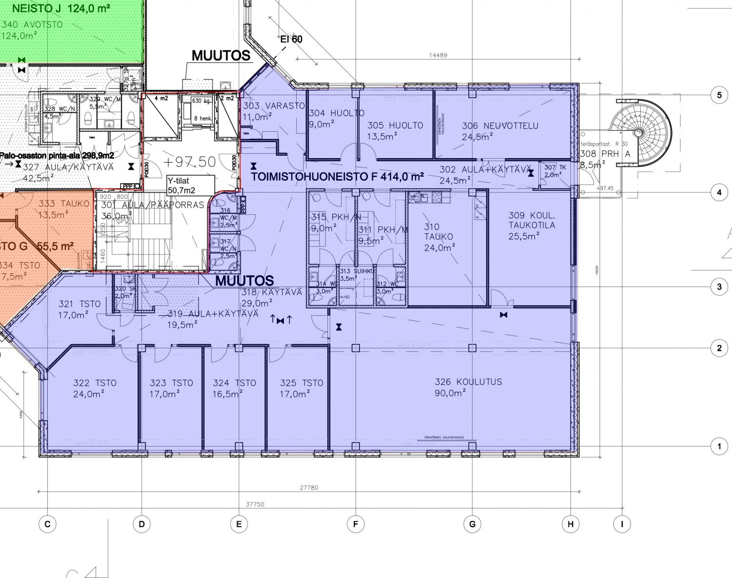 Heti vapaa 414 m2 toimistotila sisältää mm. toimistohuoneita, koulutustilan, neuvottelutilan, sosiaali- ja taukotilat ja varaston.