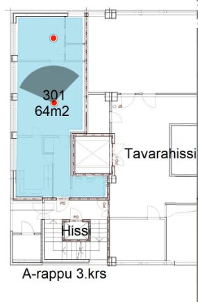 Talossa kaksi tavarahissiä, josta yhteydet jokaiseen kerrokseen ja tilaan.