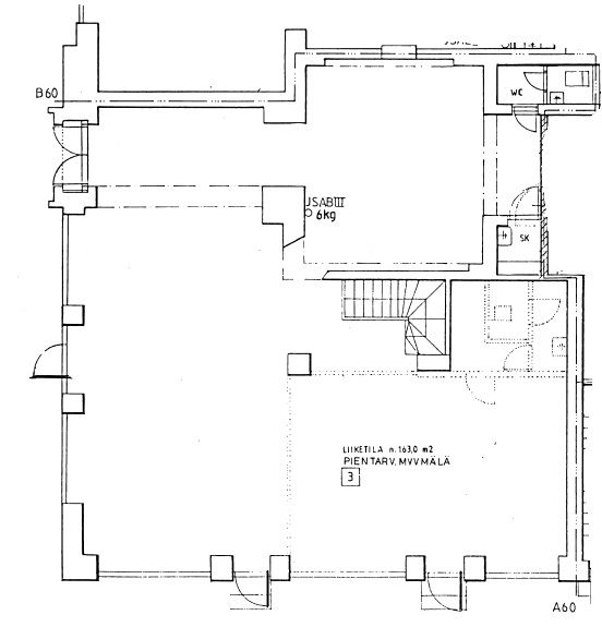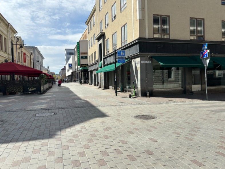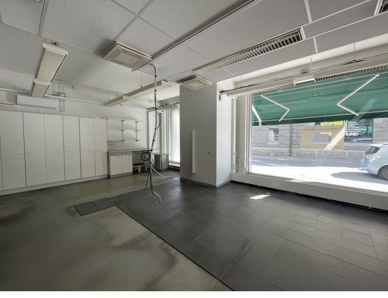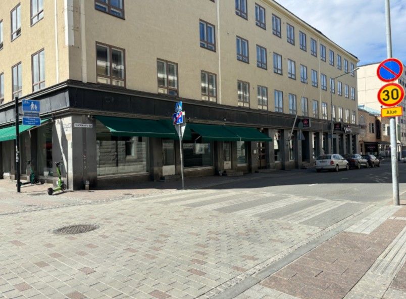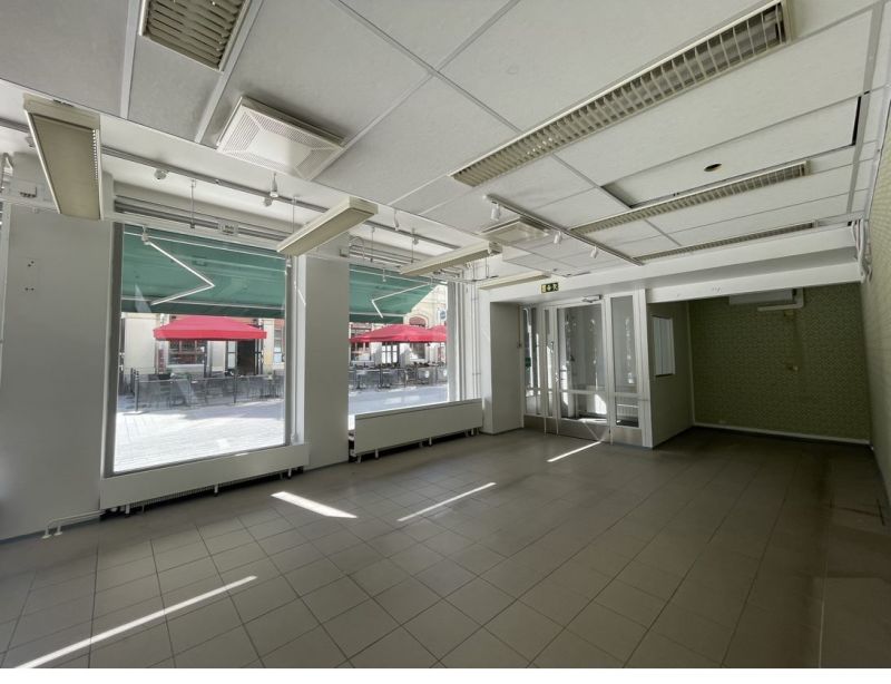 Hienolla paikalla kirkkoa vastapäätä vapaa katutason kulmahuoneisto. Myymälätilaa on 163 m2 ja alakerrassa varasto- ja sosiaalitiloja 111 m2.