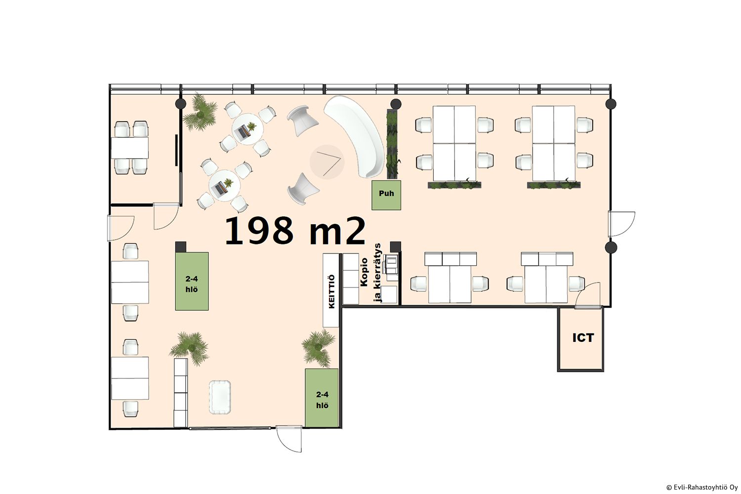 Tuo yrityksesi täysin uudistettuihin toimitiloihin! Maarinportti on v. 2025 remontista valmistuva toimistokohde. Tämä on esimerkki toimistotilasta, johon voi saada n. 16 työpistettä. Tilankäyttöratkaisuun ja materiaalivalintoihin voi vaikuttaa. Käytössä on vuokranantajan tarjoama sisustussuunnittelija. Ota yhteyttä niin kerromme lisää!