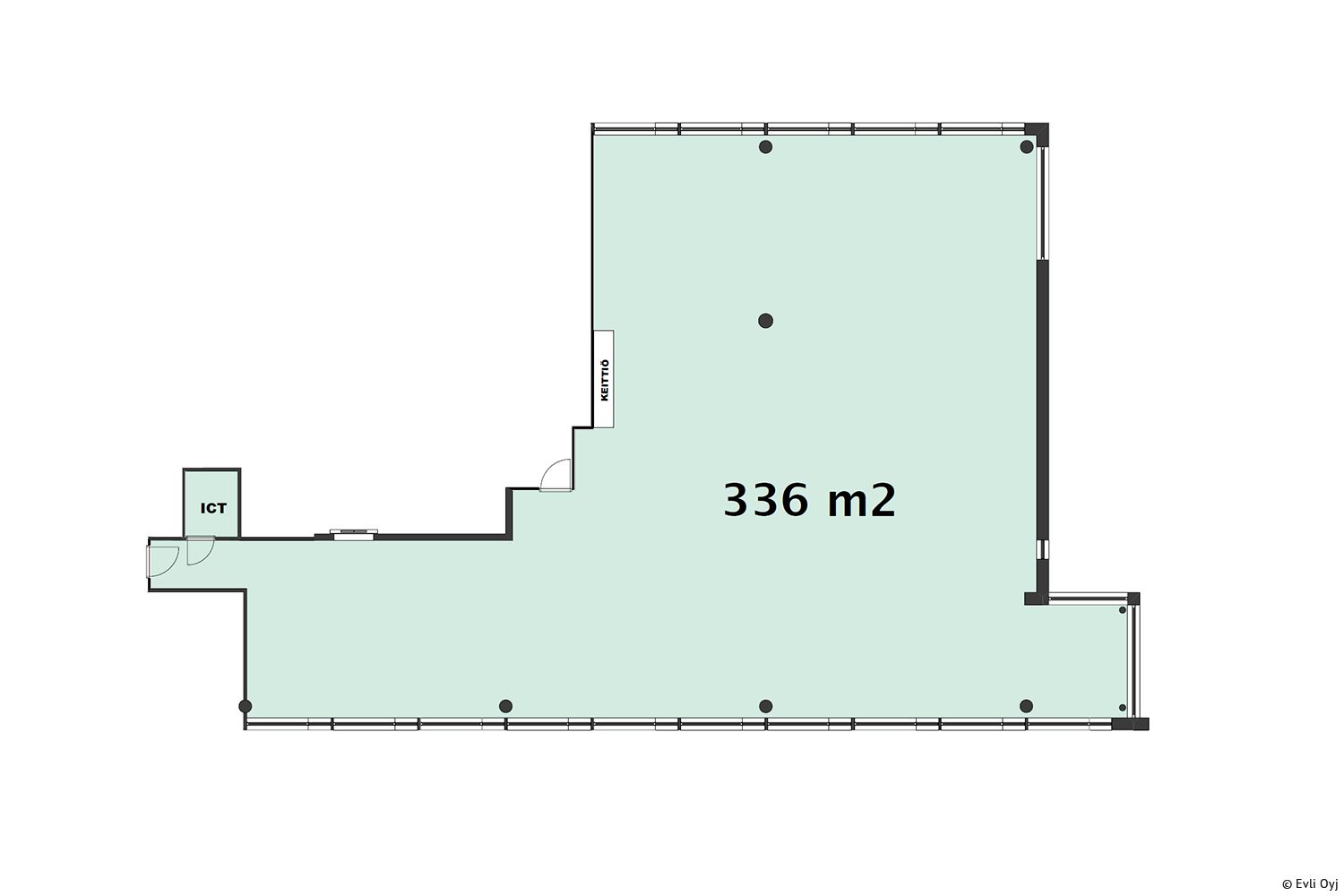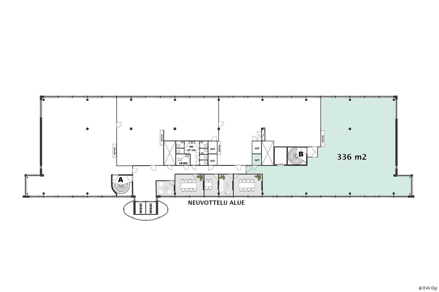 Tilan ominaisuudet: tilassa on ilmastointi, avo-/kombitoimisto